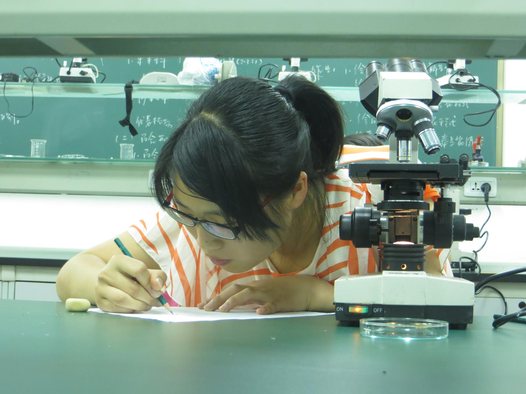 活动受到了广大生命学子的热切关注,共有63位同学报名参加大赛,经过首轮笔试环节筛选,12位同学顺利晋级决赛。决赛候场室内,选手们积极地准备着比赛内容,熟记显微镜的使用注意事项,深思生物绘图的要点难点,一个个胸有成竹,泰然自若。实验室里,选手们要求在15分钟内完成了一系列的绘图工作,从显微镜安放到植物组织绘图到最后的实验台整理,一步一步,小心翼翼,有条不紊。最后,来自12级科学教育班的徐自力同学凭借娴熟的显微镜操作技术和精湛的制图手法,夺得桂冠。
