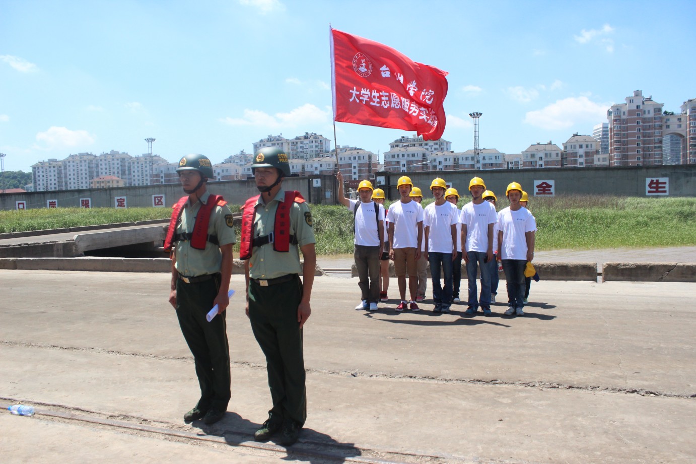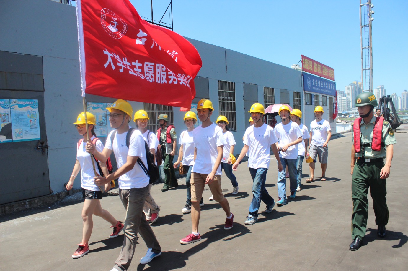 中午时分外轮靠岸,在部队领导的带领下一行人来到了官兵们的执勤点,实践队员排成整齐两列纵队起步走向码头。在岸边,高排长向大家详细的讲解了整个边检流程,介绍了出入境管理法规。看着执勤点挂着“爱民兴港”四个大字,内心崇敬之情油然而起。
