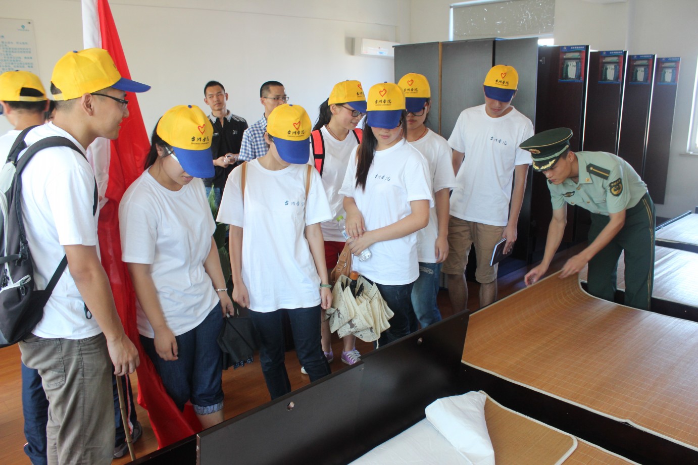 在边检站与官兵们共进午餐,安静整洁的就餐环境让人肃然起敬,而午餐前的整队唱军歌,嘹亮的歌声,雄赳赳,气昂昂,让大家更加真切的感受到浓重的军营氛围。下午,为了进一步感受军营生活,实践队员又重走了一遍军训生涯,似火的骄阳下,跟着边检官兵整齐的队列,停止间转向,走齐步,踏正步,重温大一新入学的军训生活,理解体会什么才是吃苦耐劳。