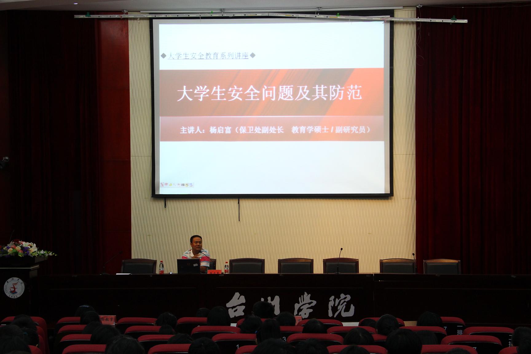 9月13日晚,生命科学学院邀请保卫处副处长杨启富老师,为2013级新生开展安全教育讲座。2013级新生刚刚结束高中生活,很多人还没有过独立生活的经验,通过讲座增强他们的安全防范意识,提升他们的自我保护技能,对他们尽快地适应大学的独立生活非常重要。