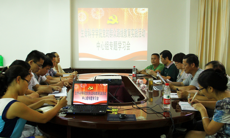 9月23日下午,生命科学学院在学院会议室召开党的群众路线教育实践活动中心组专题学习会议。校教育实践活动联络员保卫处杨启富副处长、学院党政领导、系室主任、党支部书记参加学习会。会议由学院党总支书记施时迪主持。