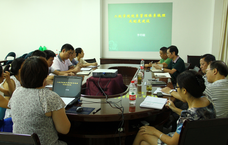 生命学院院长李钧敏结合校党委关于深入开展党的群众路线教育实践活动的要求,以“二级学院管理体系梳理及制度建设”为主题,指出了当前二级学院在管理体系上存在的问题,并提出了明确的改革思路。强调了规章制度建设在二级学院管理中的地位与作用,针对生命学院的实际情况,从行政管理、教学与科研管理、党建与思想政治工作、实验室建设等方面系统全面地梳理了相关的规章制度。她特别指出了要以群众路线教育实践活动为契机,要不断强化制度执行力和决策执行力,同时要切实提高管理创新力和工作创新力,以提升学院班子号召力和学院整体凝聚力,全面提高工作效率,实现生命学院“携手同创、和谐共赢”之目标。