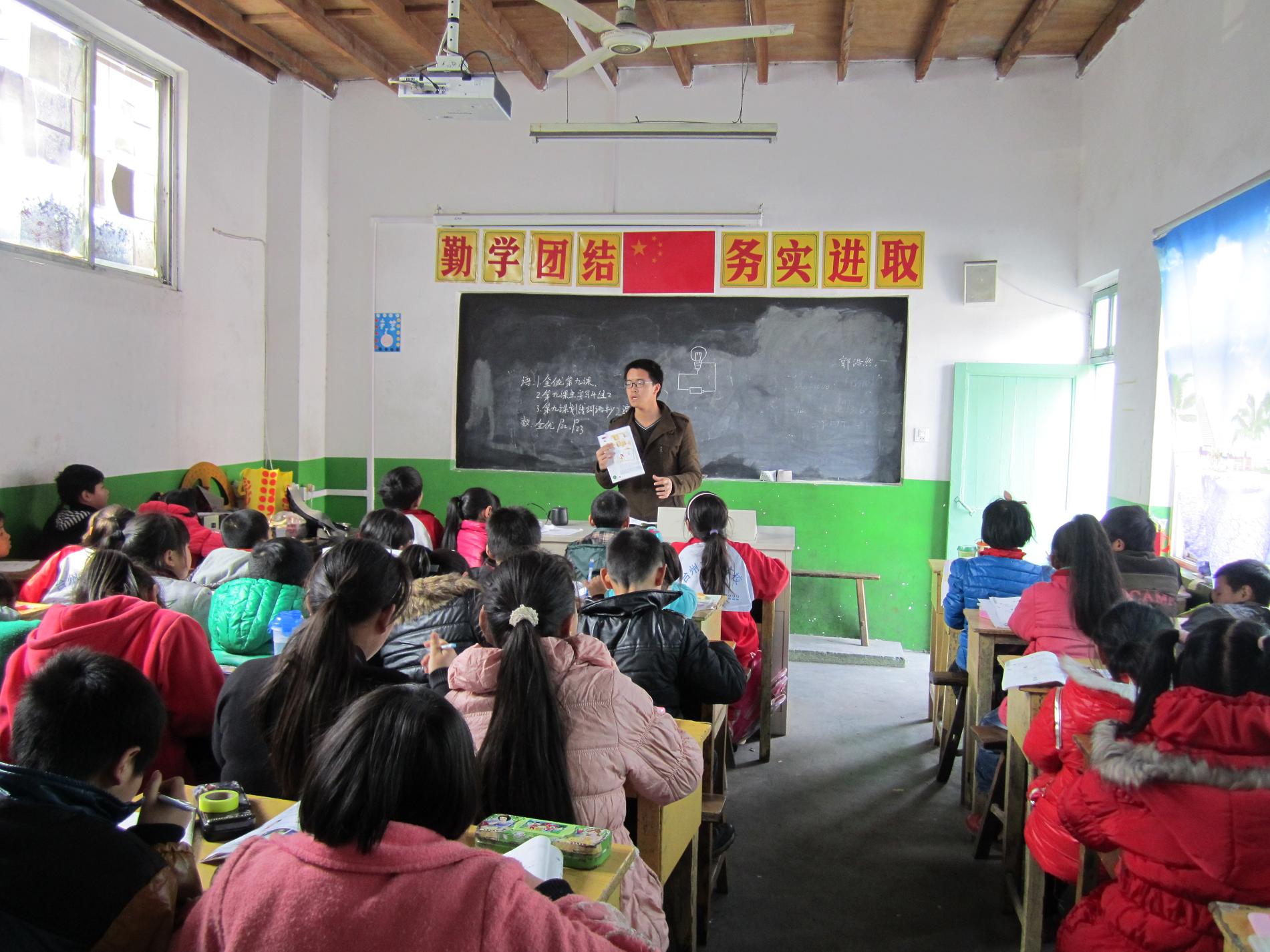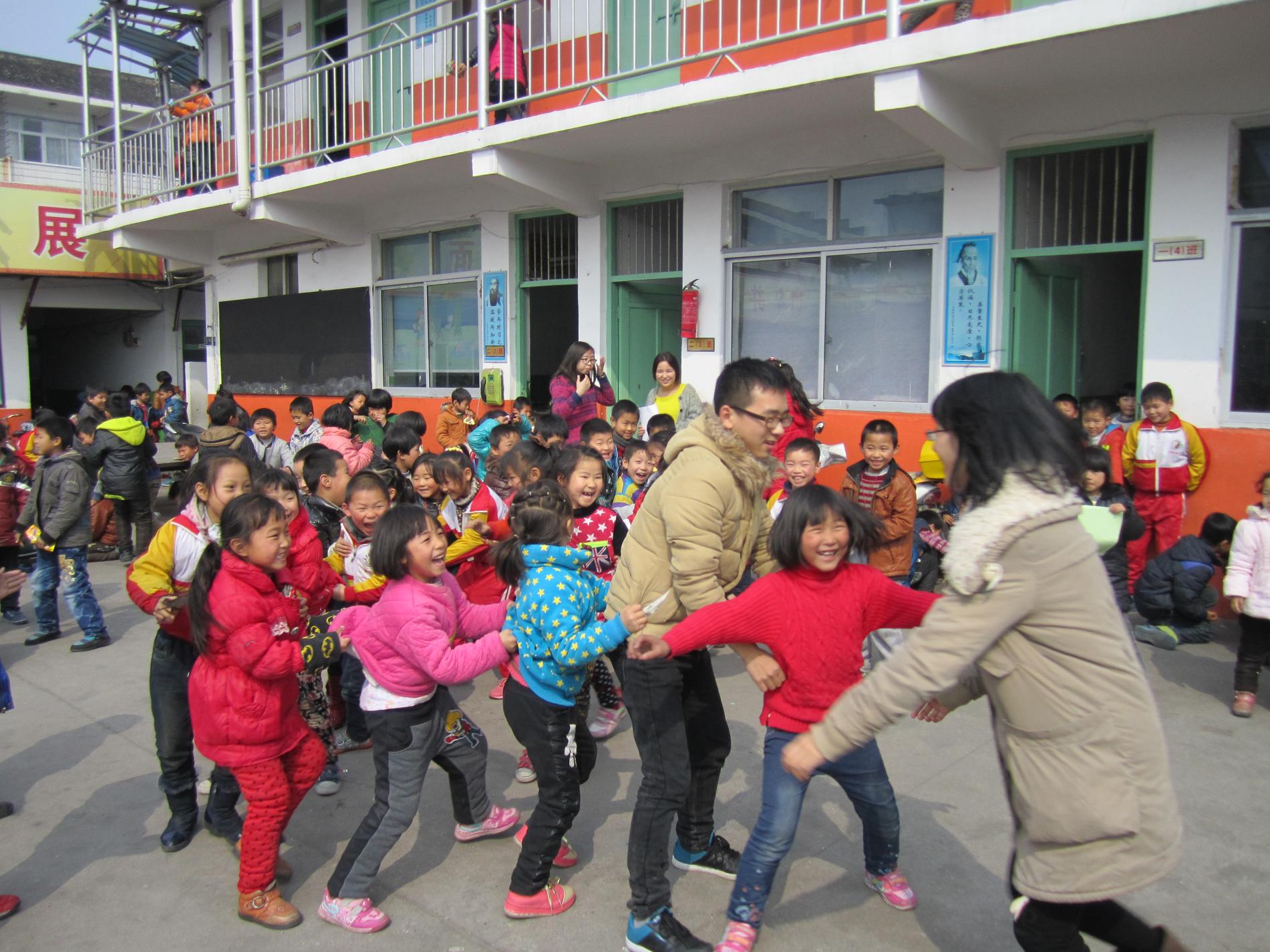 19位义务支教志愿者秉承“绿色出行”理念,骑着自行车到博远小学,小朋友们也用热情欢迎教员们的到来,纷纷拥簇到老师身旁,童真稚嫩的“老师好”,使人不得不动容。课上,教员通过讲故事、猜谜、唱歌等多元化的教学方式活跃课堂气氛,吸引注意力,以达到更好的教学效果。课间,志愿者们和小学生们打成一片,老鹰捉小鸡、跳皮筋、打纸牌、123木头人……快乐的笑声充斥博远小学,灿烂的微笑绽放在稚嫩的脸上,教员们仿佛也回到了童年无忧的快乐时光。