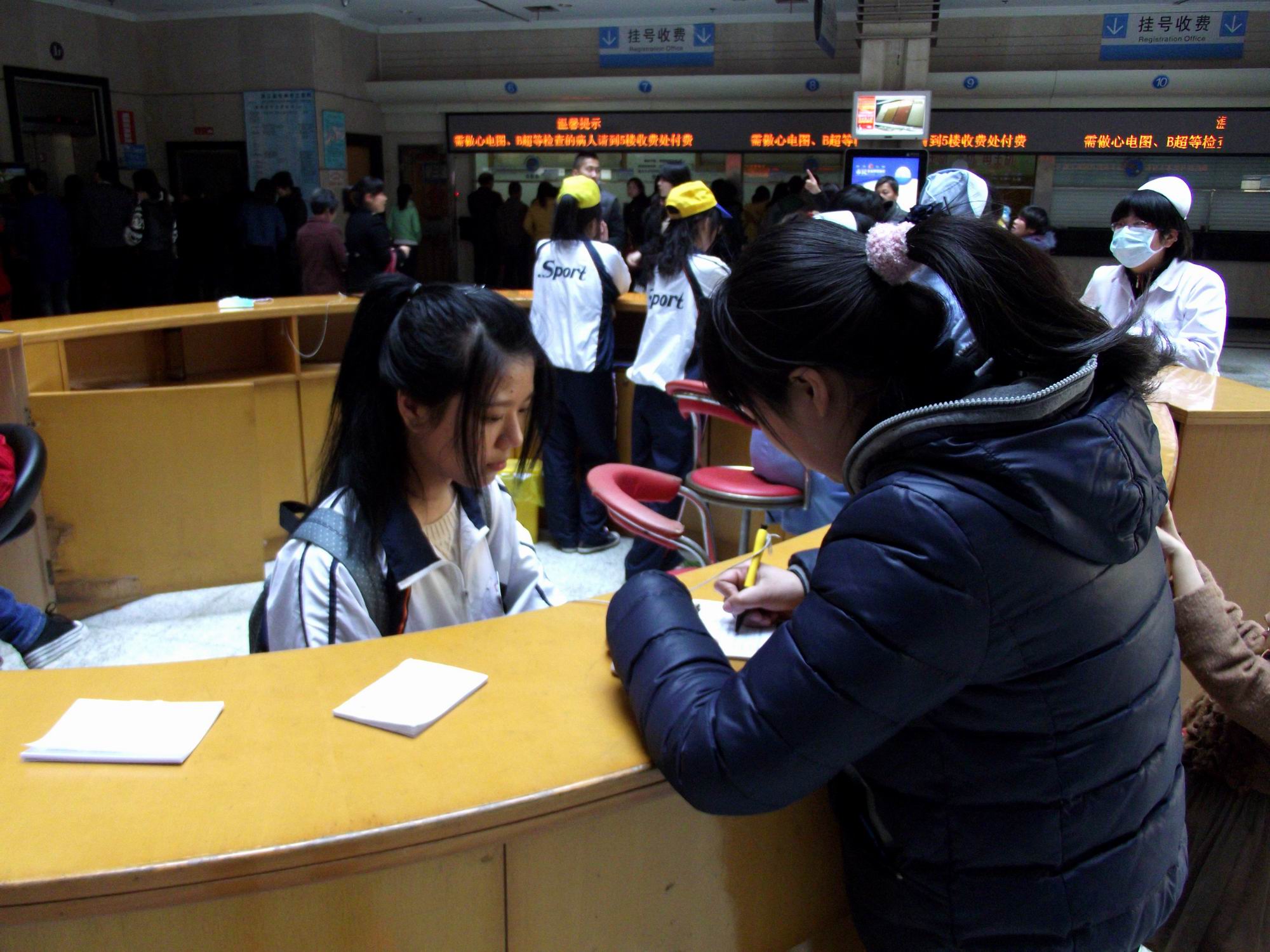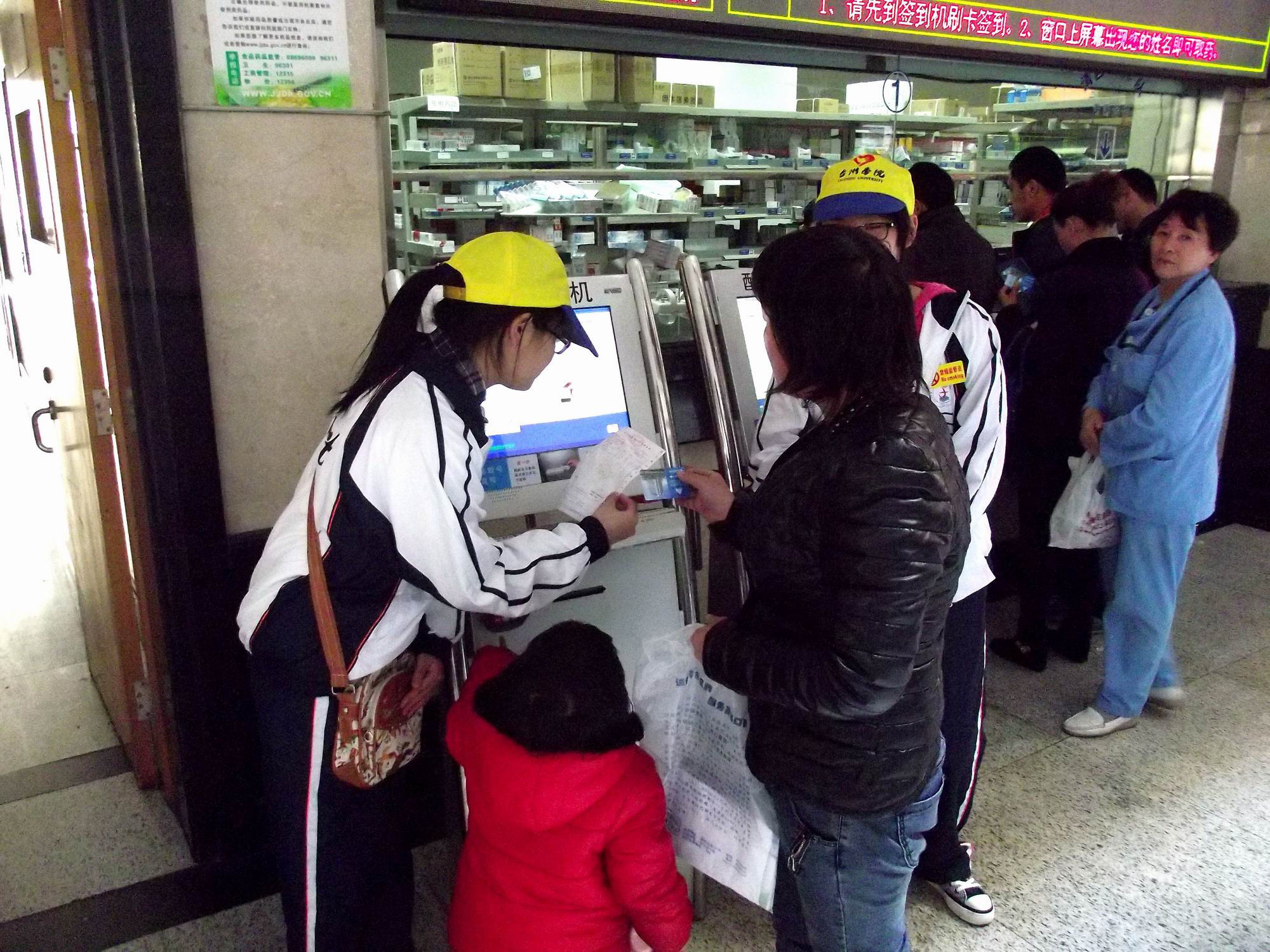 活动当天下午,和着微微的春风,迎着温暖的阳光,共有60多名志愿者头戴小黄帽,热情激昂,怀揣着爱心抵达市立医院开展志愿服务活动。活动伊始,在院方朱医生热情的接待和带领下参观了医院的整体布局。随后,同学们井然有序地分散到医院各个角落进行帮扶工作。主要内容包括帮助病人挂号,取药,打印化验单,就诊科室引导,搀扶行动不便的患者,为住院病人解读卫生健康知识,发放报纸等系列服务。同学们的辛勤付出,给病患抹去脸上的焦虑,收获真挚谢意的笑脸。