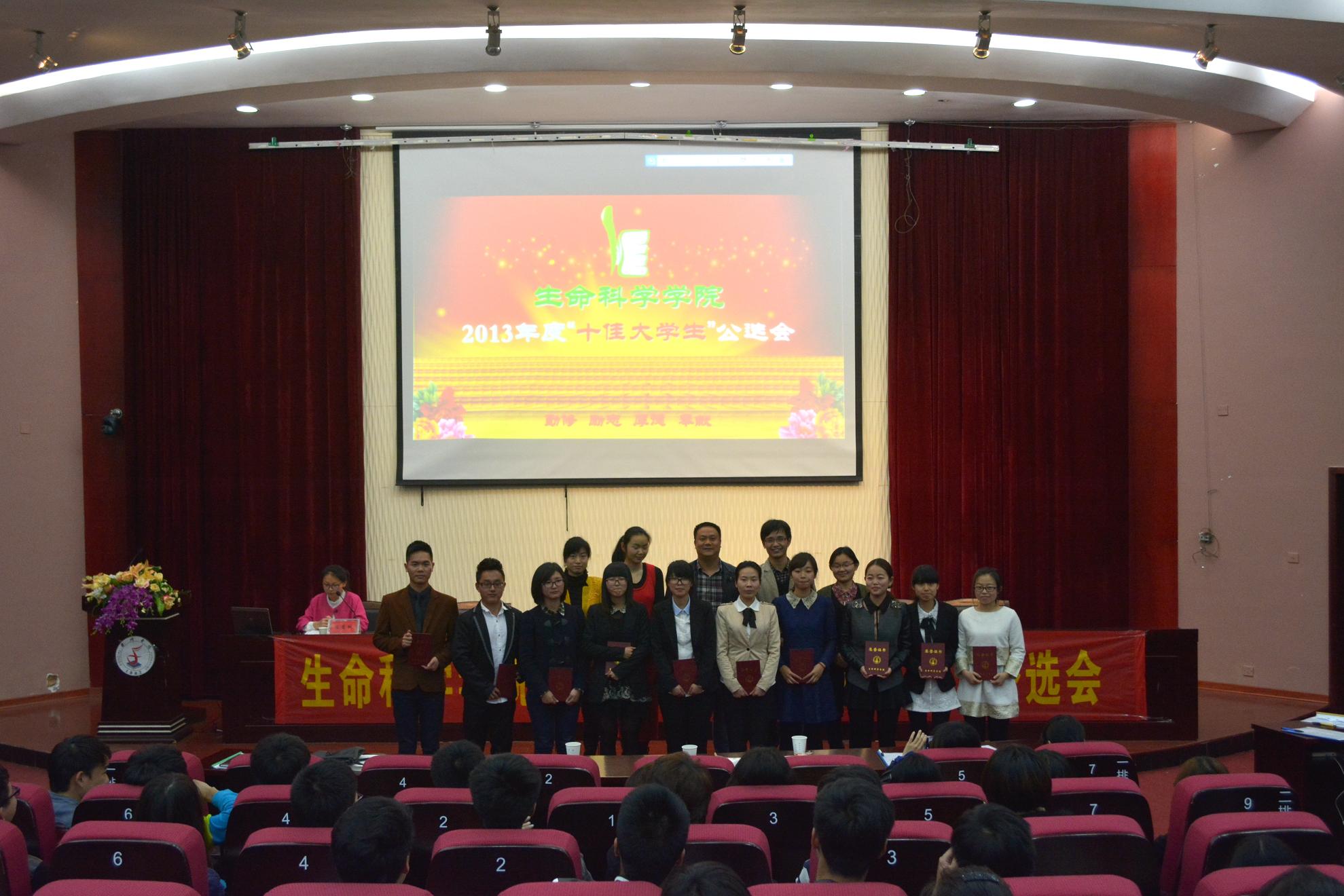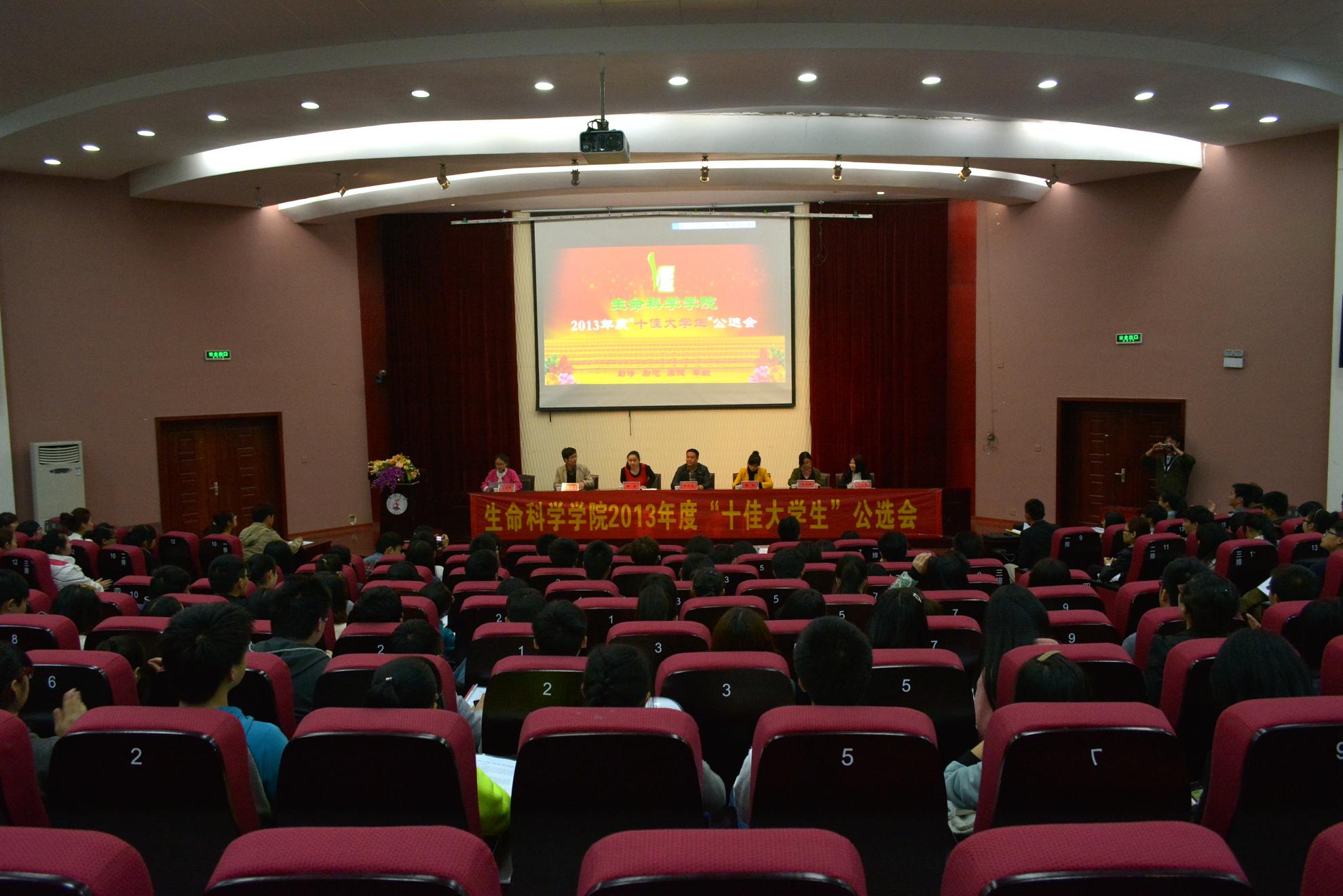 为积极培育和践行社会主义核心价值观,争做“精神富有的浙江青年”,深入挖掘和大力宣传、表彰大学生先进典型,充分发挥先进典型的感召、示范作用,3月27日晚,生命科学学院在椒江校区学术报告厅隆重召开2013年度“十佳大学生”公选会。学院党总支副书记杨启富老师、全体辅导员、第八届团学会委员及各班代表出席大会。