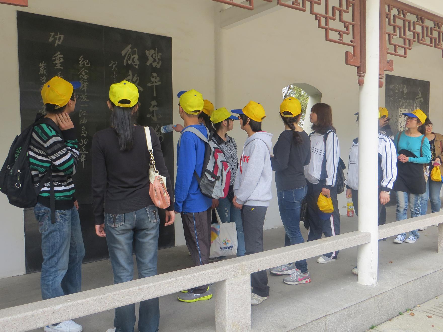 功勋未掩埋,灵魂传亘古。在庄严肃穆的烈士浮雕前,同学以一颗尊崇的心,聆听革命先烈解放一江山岛的战斗经历。从不畏前险奔赴战场到带伤依旧坚守战线,他们的光辉事迹一点一点烙印在了同学们的心里。随后,38位同学摘下自己的帽子,为革命先烈默哀,并深深鞠躬。同学们踏着沉重的步伐走进烈士陵园,在三鞠躬后为烈士们献上自己亲手做的小白花。纪念馆内战士们战斗场景的油画和雕像、壮烈牺牲后遗留下的军服以及作战时军舰的模型都让在场的同学们对革命有了更深的理解。