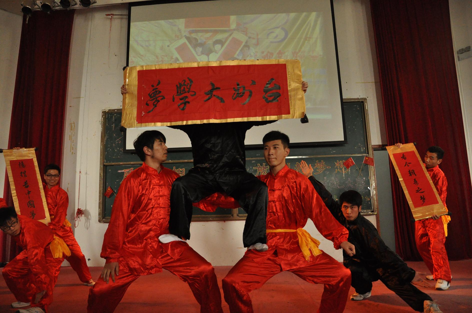 “黄种人,来到地上,挺起新的胸膛……”,大赛在一首耳熟能详的歌曲《黄种人》中拉开帷幕。各团支部集思广益、精益求精,以情景剧、诗朗诵、大合唱等多种艺术形式表达了青春托起“中国梦”的信心与决心,诠释了年轻一代“团结、激情、奋进”的团文化。歌舞剧《梦立方》以歌舞、朗诵相结合的方式深刻阐述了“中国梦”的具体含义;情景剧《加油·中国》生动形象地描绘了中国共产党的精神力量;舞台剧《情溯历史·心系梦想》融武术、舞蹈和朗诵于一体,完美的诠释了梦想的力量。最终,12科学教育团支部的情景剧《青春志·中国梦》以其无尽创意、无限感动、无比震撼,勇夺桂冠。
