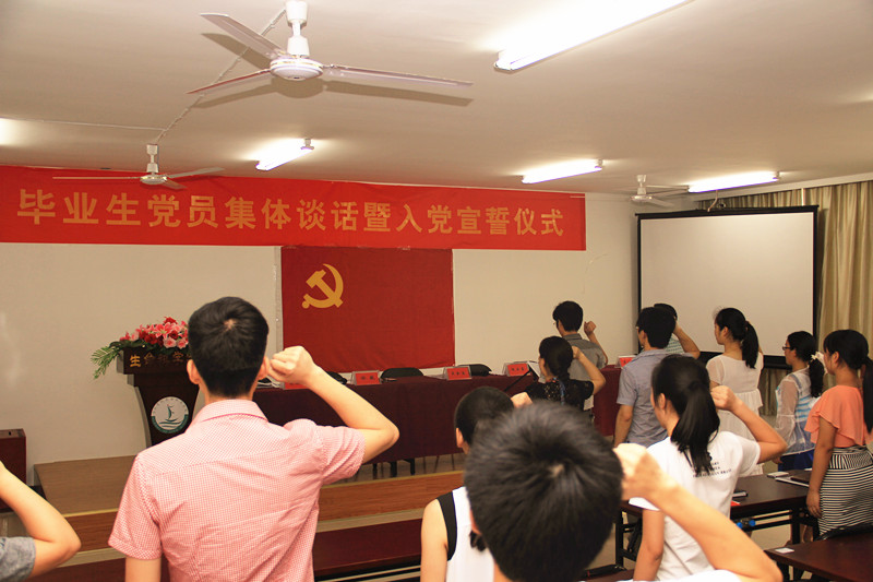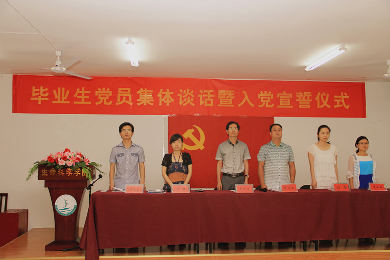 6月12日下午,生命学院在D-241大会议室隆重举行毕业生党员集体谈话暨入党宣誓仪式。学院党总支书记王金宝、副书记杨启富出席,各学生专业党支部书记及全体毕业生党员参加仪式。