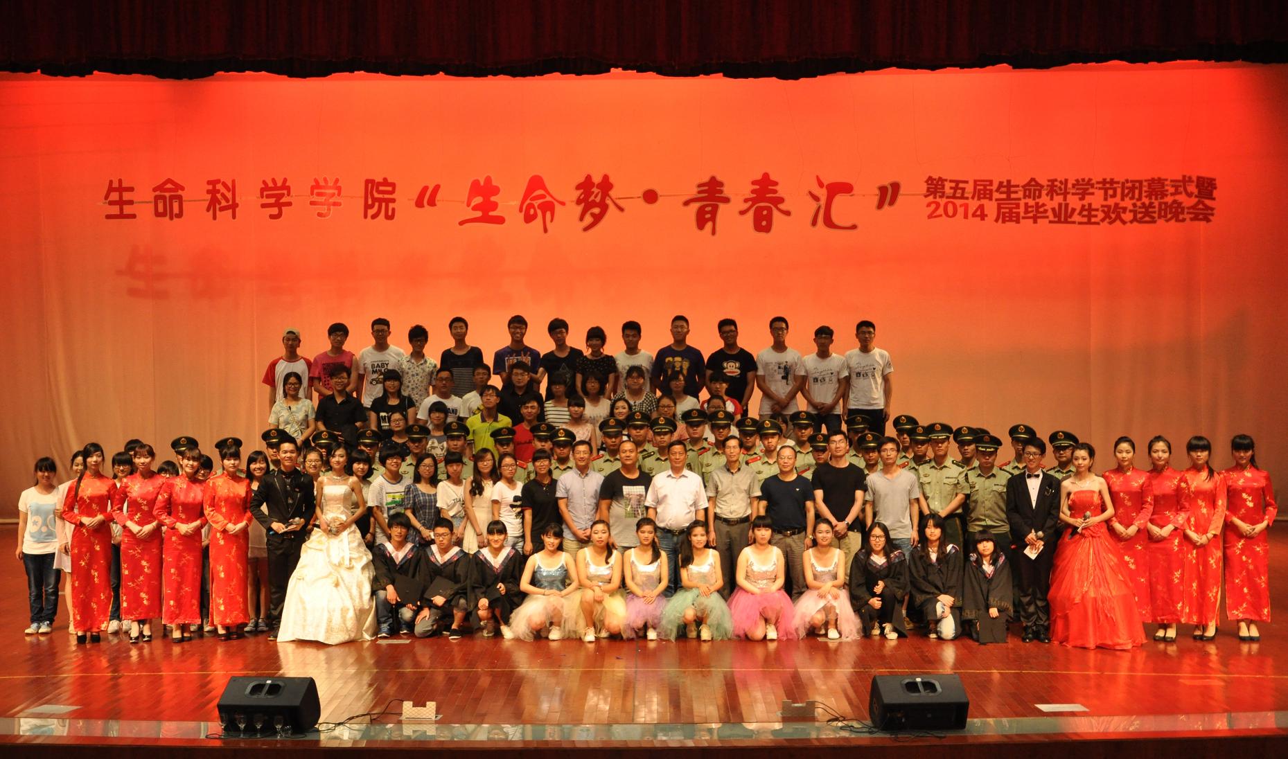 晚会以“生命梦·青春汇”为主题,围绕“三生”教育,既是祝贺学院第五届生命科学节顺利闭幕,又是学院以晚会的形式欢送2014届的毕业生,对即将离校的生命学子们表达最真挚的祝福。学院精心打造“一院一品”校园特色文化品牌项目,通过多元化活动为学生提供展现自我的平台,为校园品牌活动项目创造良好的发展条件。同时,学院高度重视毕业生文明离校工作,晚会作为文明离校工作的收官部分,从节目编排、选拔到排练,历时两个多月,舞台上短暂的两个小时,无法言说四年的深情厚谊,衷心祝愿2014届毕业生扬帆起航,开启人生新的征程。