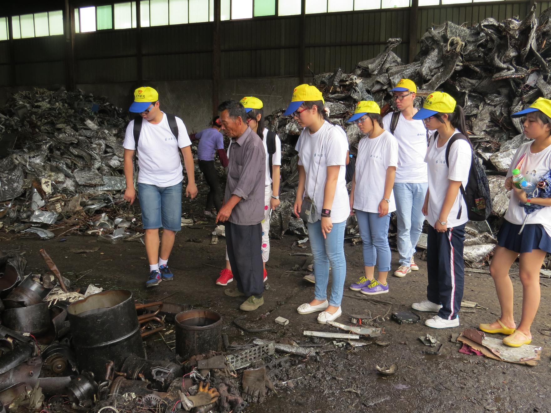 活动中,队员们在公司负责人的带领下,参观工厂工作路线,实地考察学习旧金属处理方法,深刻了解金属回收处理的全部流程。金属经人工拆解、分类,粉碎等过程后达到回收的目的,整个过程不使用燃烧或者加热融化的工艺,不会产生有害气体与污水排放。在观察了工厂员工拆卸金属的过程后,实践队员们深感金属处理之不易,并更加坚定了保护环境的决心。随后,队员们紧紧围绕“金属与环保”这一主题,仔细询问了负责人关于台州市金属污染的情况,以及相关部门对此采取的具体措施。