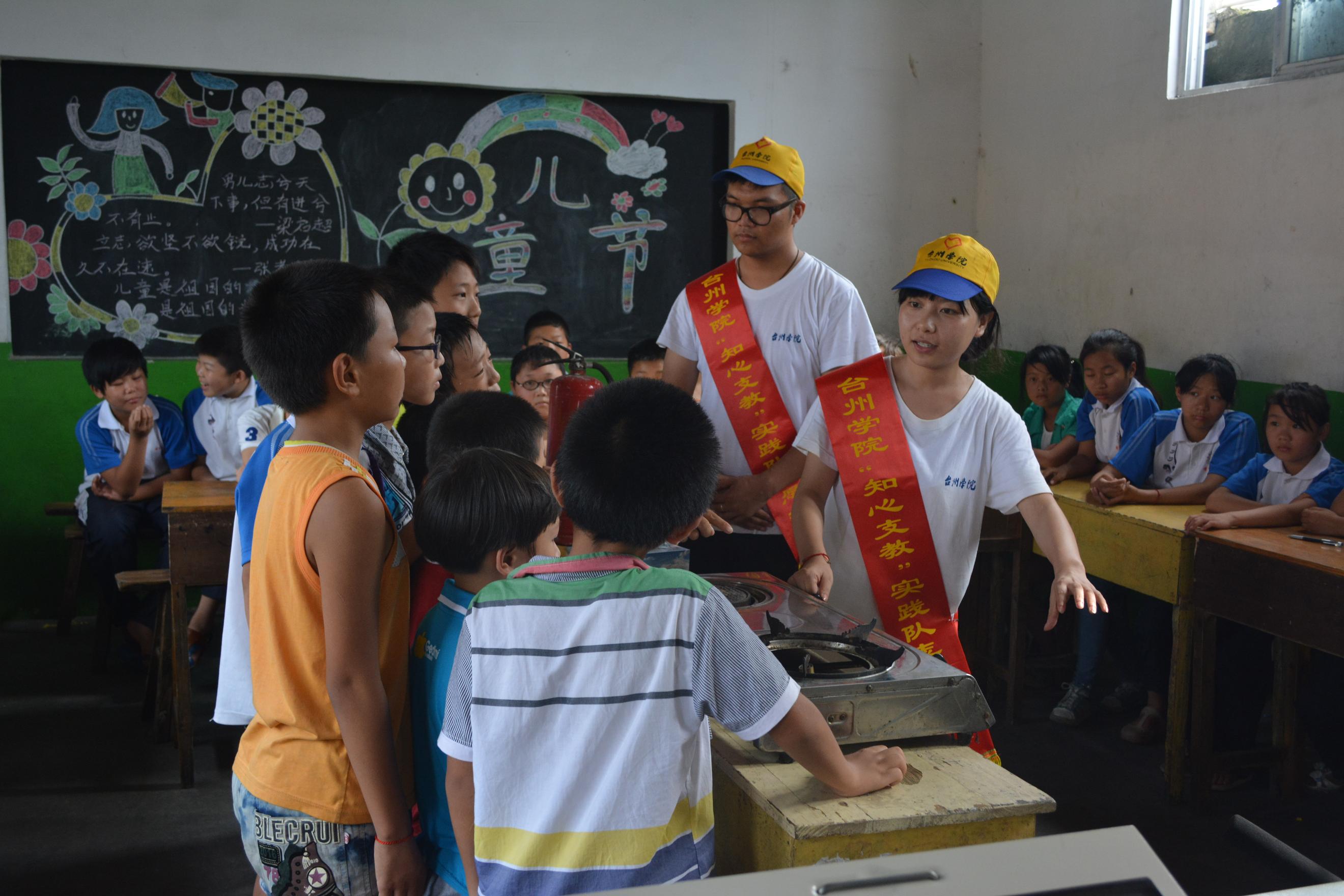流动党员代表张开翼老师作为本次讲座的演讲者,向孩子们详细地介绍了生活中各方面的安全注意事项。交通事故作为近几年学生安全事故中发生频率最高的事件之一,张老师首先强调了交通安全,从行走、乘车和骑车三个方面,分点阐述了这三个方面中重要的安全要点。随后张老师又向大家叙述了防火安全。其中包括如何防范火灾的发生以及在火灾发生后如何灭火。为加强孩子们的印象,台州学院“知心支教”实践队的队员们上前为大家讲解家用电器、电热水壶和灭火器等物品日常操作中的注意事项。与此同时,实践队的其他队员们在博远小学校园内发放相关知识手册,向小学生们介绍日常生活中的安全常识,宣传自我保护意识。接下来,张老师还向学生们讲解了活动安全、饮食安全、用电安全、游泳安全等方面的注意事项以及一些自我保护的技巧和方法。