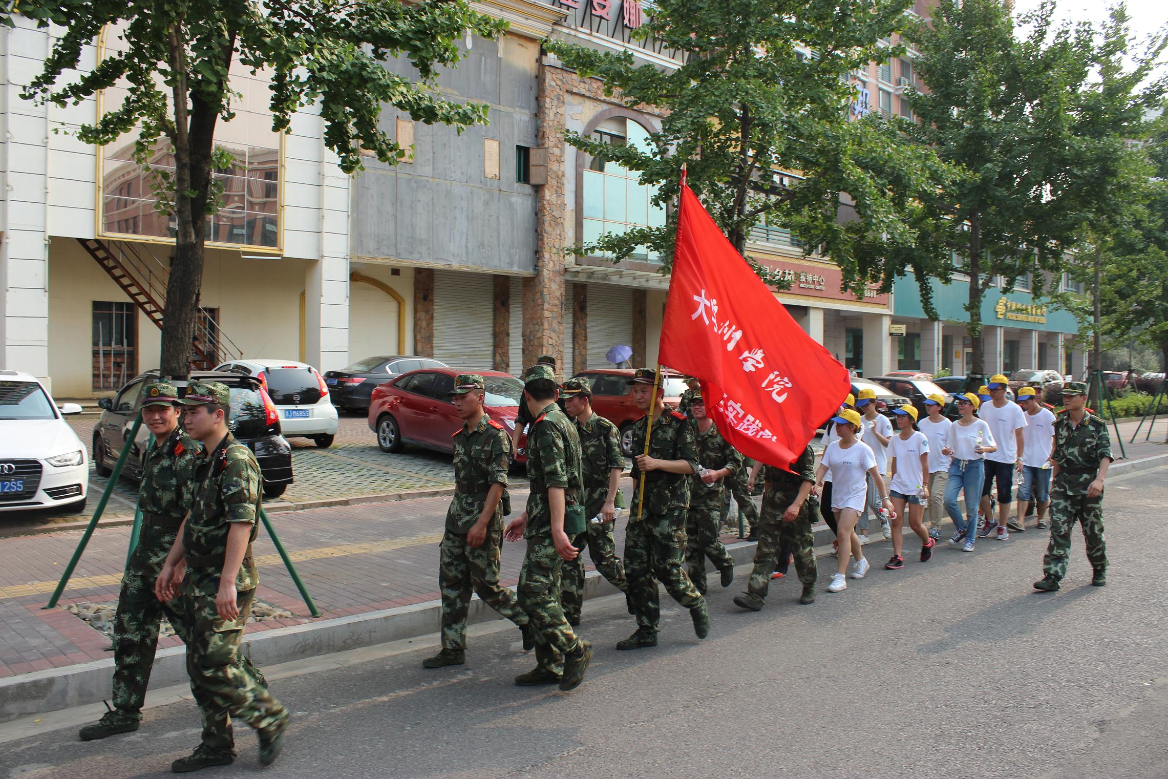 下午三点,焦阳炽热,在列队完毕后,这支由十二个实践队员与十五个边检官兵组成的队伍,便浩浩荡荡地向解放一江山岛革命烈士陵园进发。阳光晒干实践队员被汗水浸透的衣服,疲惫充斥着实践队员的身体,但实践队员们始终学习边检官兵的优秀精神,坚持奋斗,让每一个脚步都踏出生命的力量。期间,激动兴奋飘荡在实践队员们的歌声里。边检官兵温馨的话语“尽量少喝水,以免脱水”、“不要擦身上的汗”、“如果身体不适,不要逞强,及时告知我们”等都如阵阵清风,驱走这盛夏的暑意。烈日下,边检战士一次次站在汽车面前,止住汽车,让队伍安全前行的身影,俨然是夏日里一道靓丽的风景线。短短的两个小时,近几十公里的路程,实践队员本着吃苦耐劳的精神,行走在椒江的大街小巷,圆满完成了此次拉练任务。