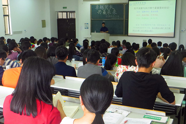 校新闻中心主任潘垚老师通过丰富的实例,为学生干部详细介绍了新闻简讯的写作方法和技巧,并讲解如何采集高质量新闻照片,切实提高写作能力与新闻素养。学院辅导员翁添富老师就如何提升决策力与执行力作了专题辅导讲座。