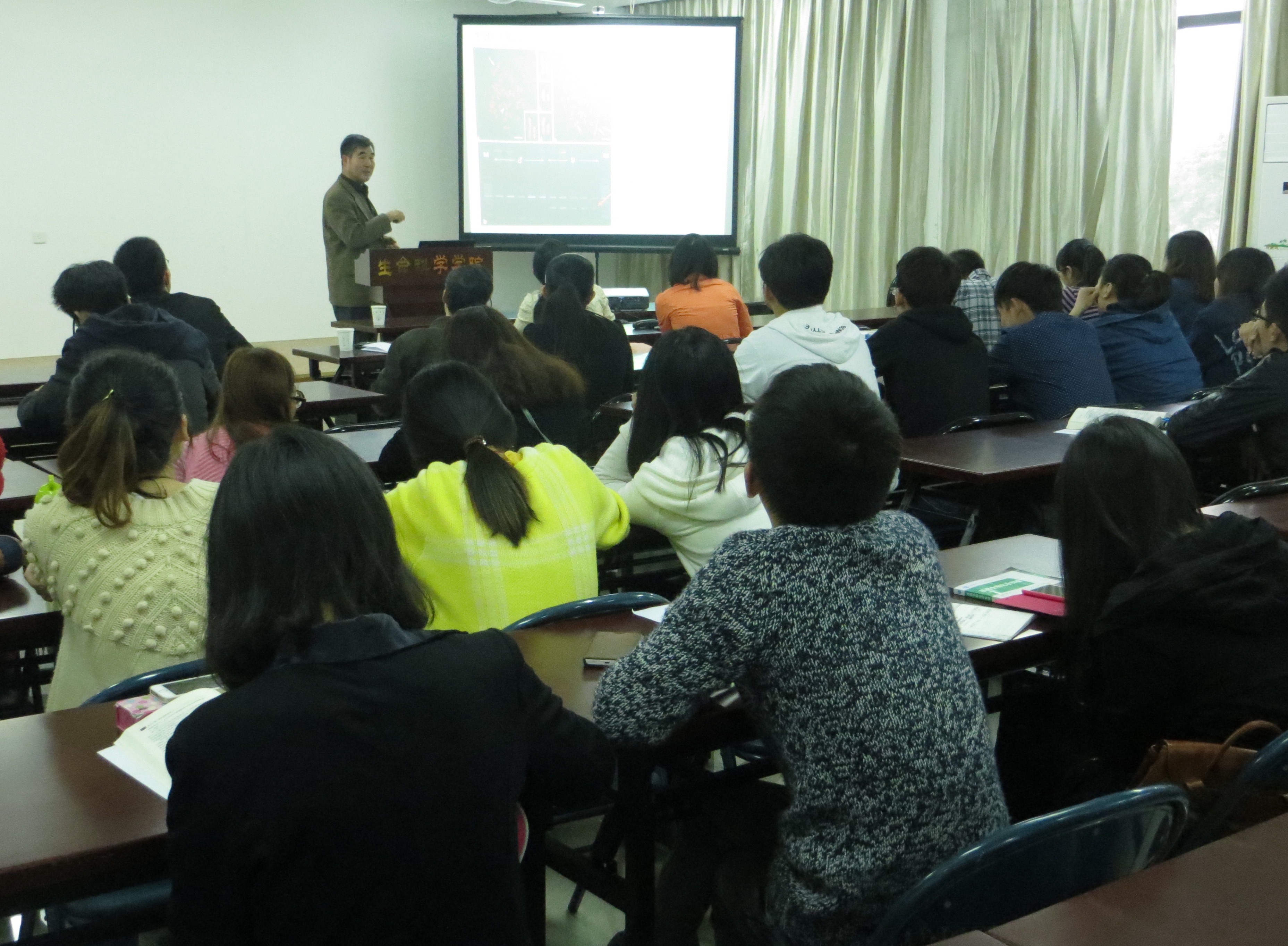张全启教授着重分析了鲆鲽鱼类新品种培育的遗传学思路和可操作方法,系统介绍了其研究团队多年来在半滑舌鳎和牙鲆两种名贵鱼类选择育种和性别控制育种方面的探索性工作和最新成果。其精巧的设计和严密的推理,展示了科研工作者探索未知、创造新知的历程,引起师生的极大兴趣和广泛共鸣。张教授同时结合国家海洋经济发展战略及我国海洋生物资源状况,鼓励师生抓住历史机遇,积极投入到海洋渔业发展事业,为地方海洋资源开发和海洋经济发展贡献力量。