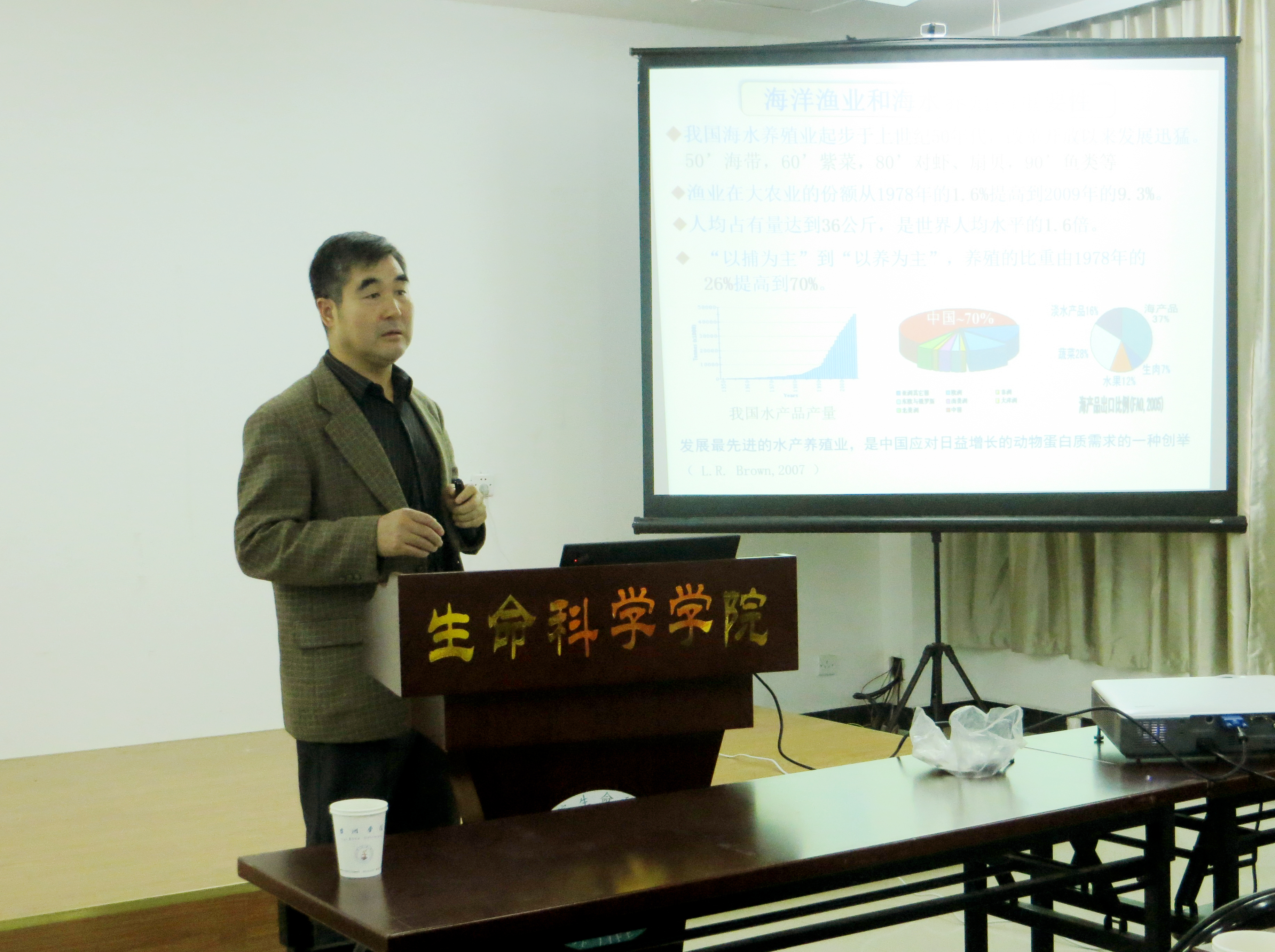 11月7日下午,应生命科学学院邀请,山东省泰山学者、中国海洋大学博士生导师张全启教授,为学院师生作“鲆鲽鱼类选择育种和性别控制育种进展”专题学术讲座。生命学院副院长孙长森主持讲座。