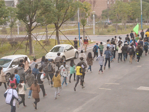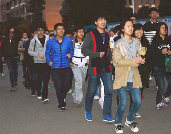 下午5时开始,生命学子齐聚学院大楼前,随着一声令响,校园健康跑活动正式开始,700多位同学跟随着高扬的院旗,欢快地奔跑在校园内。根据校区的布局情况,活动精心设计了跑步路线,以期让更多的同学了解并积极参与到校园健康跑中来,在全校范围内掀起全民健身运动的热潮。在落日余晖映衬下,整齐的跑步队伍成为校园一道独特的风景线。