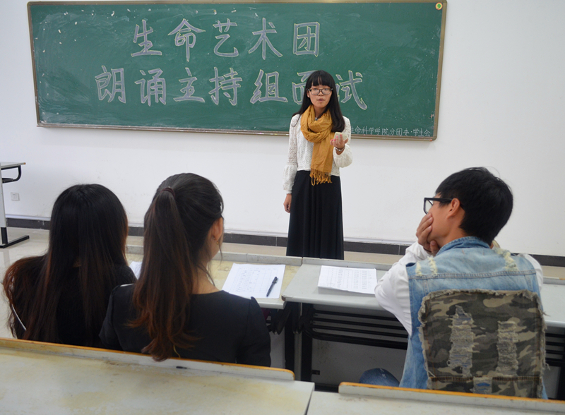 为进一步丰富大学生的校园文化生活,提升学生艺术品味,11月29日,生命科学学院于D号楼开展“生命艺术团”成员的选拔工作,艺术团由歌曲舞蹈组、小品话剧组、朗诵主持组和乐器组等四个艺术小组组成,院团学会部分委员受邀作为评委。
