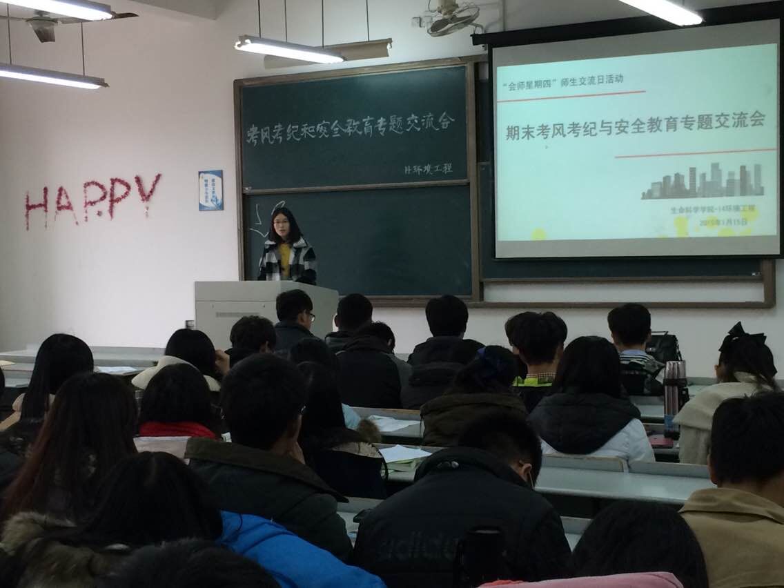 为进一步发挥会“师星期四”师生交流日活动的作用,增强教师在学生考风考纪方面的诚信引导力,营造积极向上的学习氛围和风清气正的考试环境,切实做好期末考风考纪建设及寒假期间的安全教育工作,生命科学学院于1月15日下午分班开展“会师星期四”诚信与安全教育主题交流活动。
