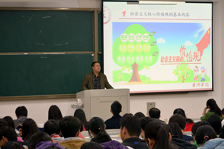 杨启富副书记着重阐述了广大青年学生树立和培育社会主义核心价值观的重要性和迫切性,以及学院开展主题教育实践活动的重要意义。他围绕“青年学生要自觉践行社会主义核心价值观”主题,以习近平总书记在北大师生座谈会上讲话内容为切入点,从“社会主义核心价值观是什么”、“为什么要自觉践行社会主义核心价值观”、“青年学生应如何践行社会主义核心价值观”等三方面展开具体阐述。强调当代青年学生践行社会主义核心价值观要牢牢把握勤学、修德、明辨、笃实的实践途径,下得苦工夫、求得真学问,加强道德修养、注重道德实践,善于明辨是非、善于决断选择,扎扎实实干事,踏踏实实做人。同时引导广大青年学生要将社会主义核心价值观内化于心、外化于行,从自身做起、从小事做起、从现在做起,传播社会正能量,树立道德新风尚,争做最美大学生。