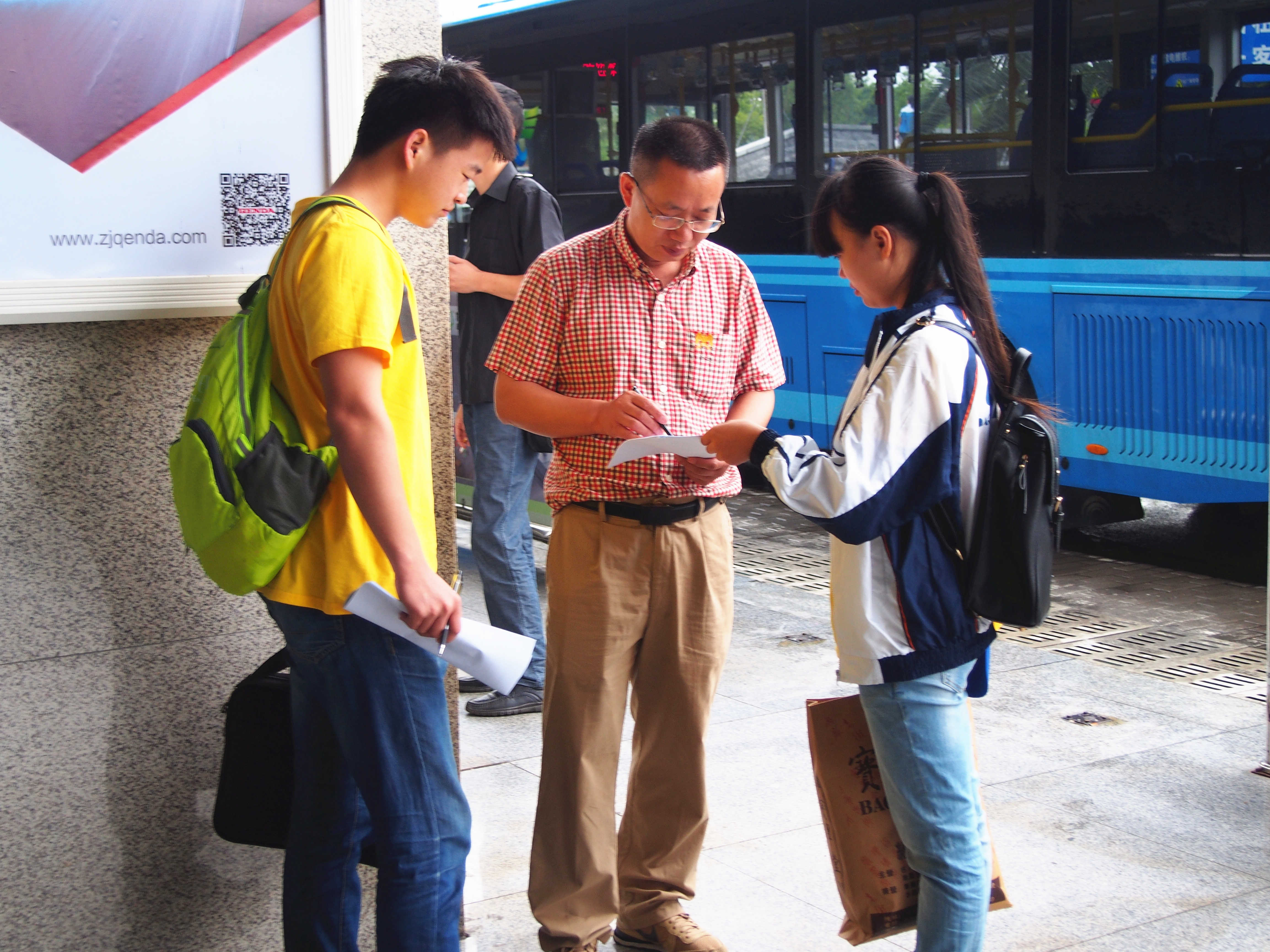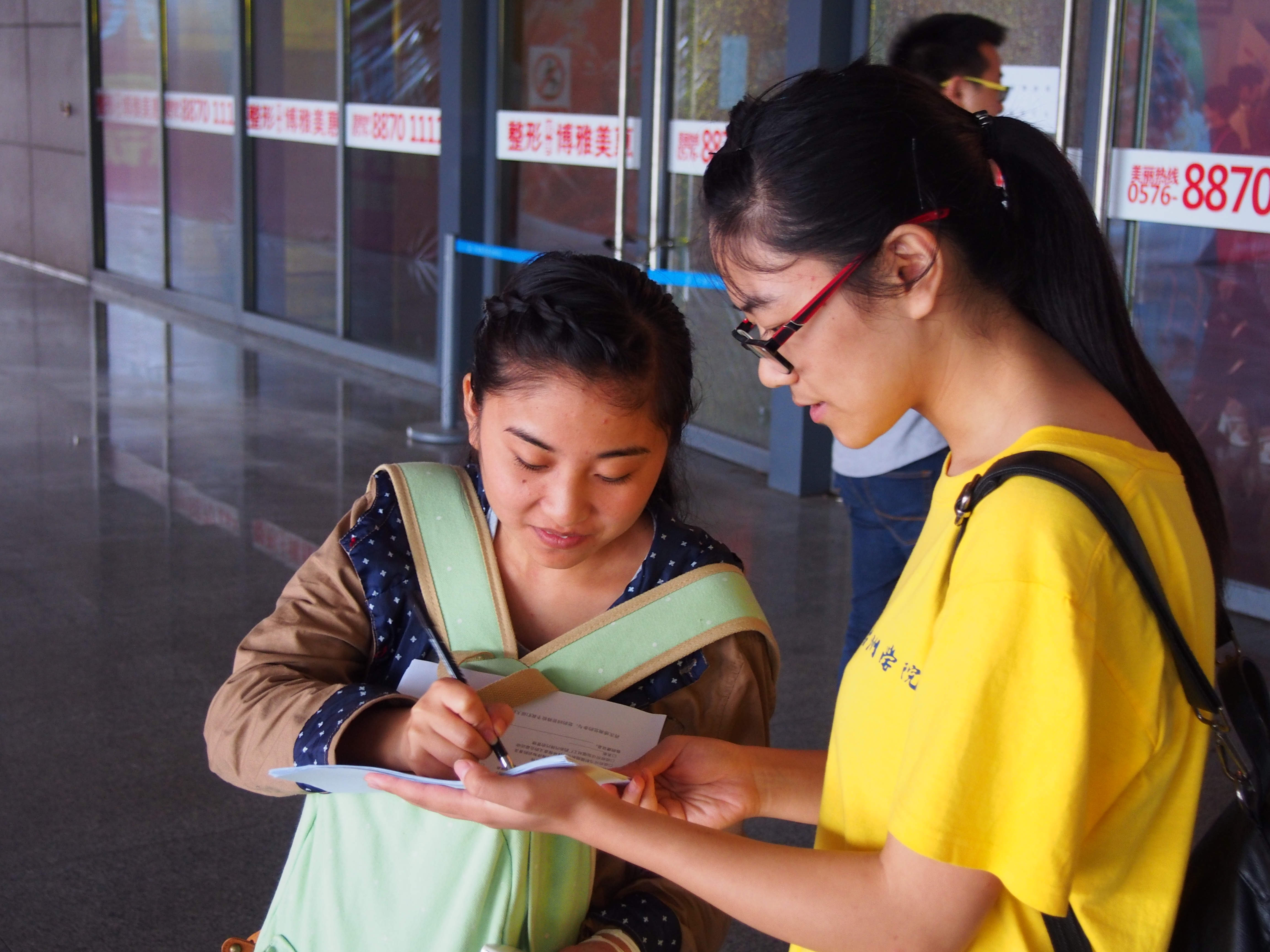 上午,队员分成两组向台州火车站的市民进行问卷调查,开始调查问卷后,并没有队员们想象的那样容易,有的市民甚至还没等实践队员说明来意便摇手拒绝,但实践队员的坚持不懈,鲜艳的黄色在人群里穿梭,市民对于实践队员的出现纷纷露出好奇的神色,一些市民甚至主动上前与队员亲切交谈。大多数的市民对队员们的活动纷纷表示支持,一字一句认真阅读并填写了问卷。