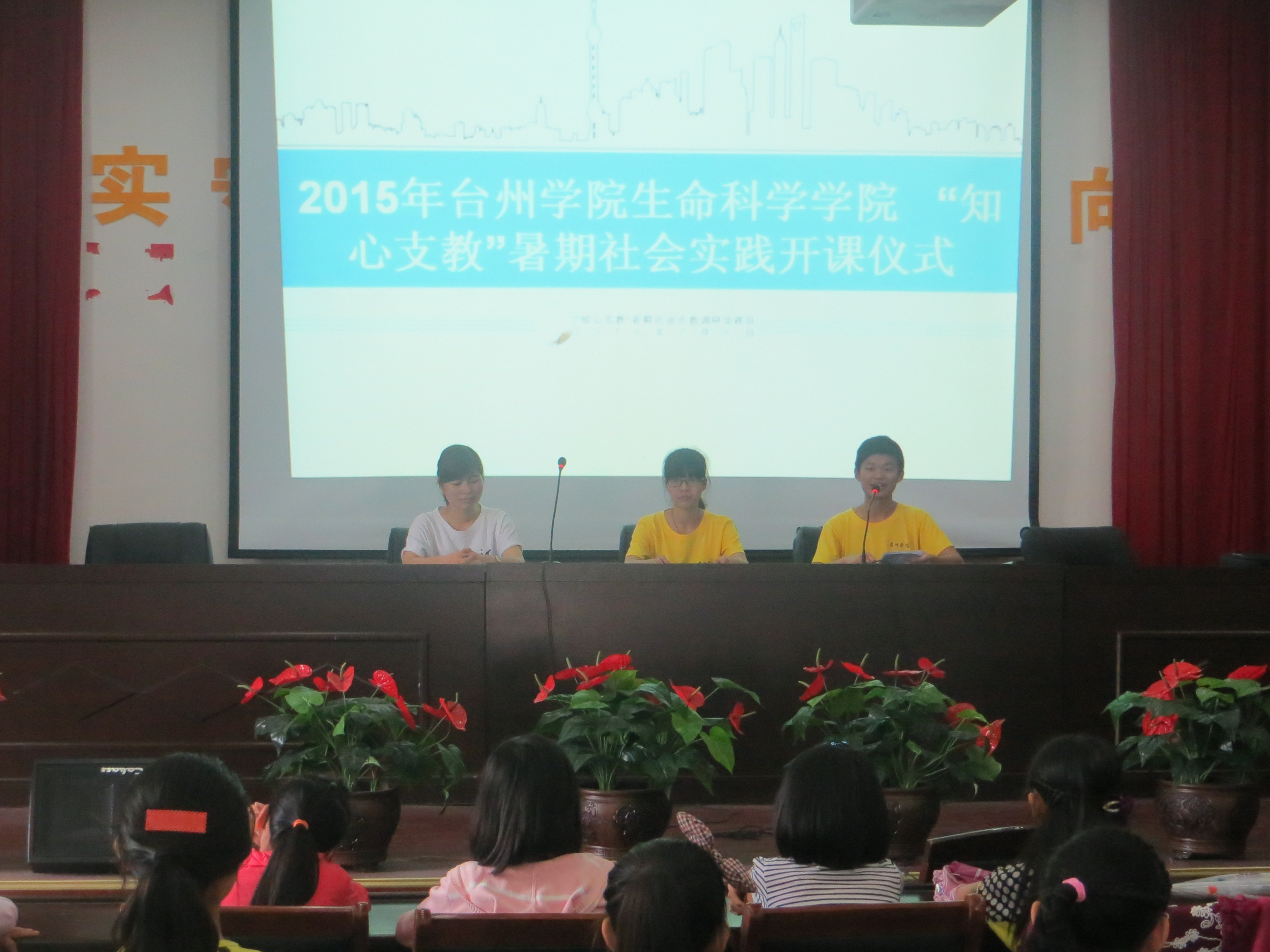 7月8日,台州学院生命科学学院“知心支教”暑期社会实践支教开课仪式于东山中心小学小礼堂隆重举行。东山中心小学副校长徐红飞,30名在校学生参加。