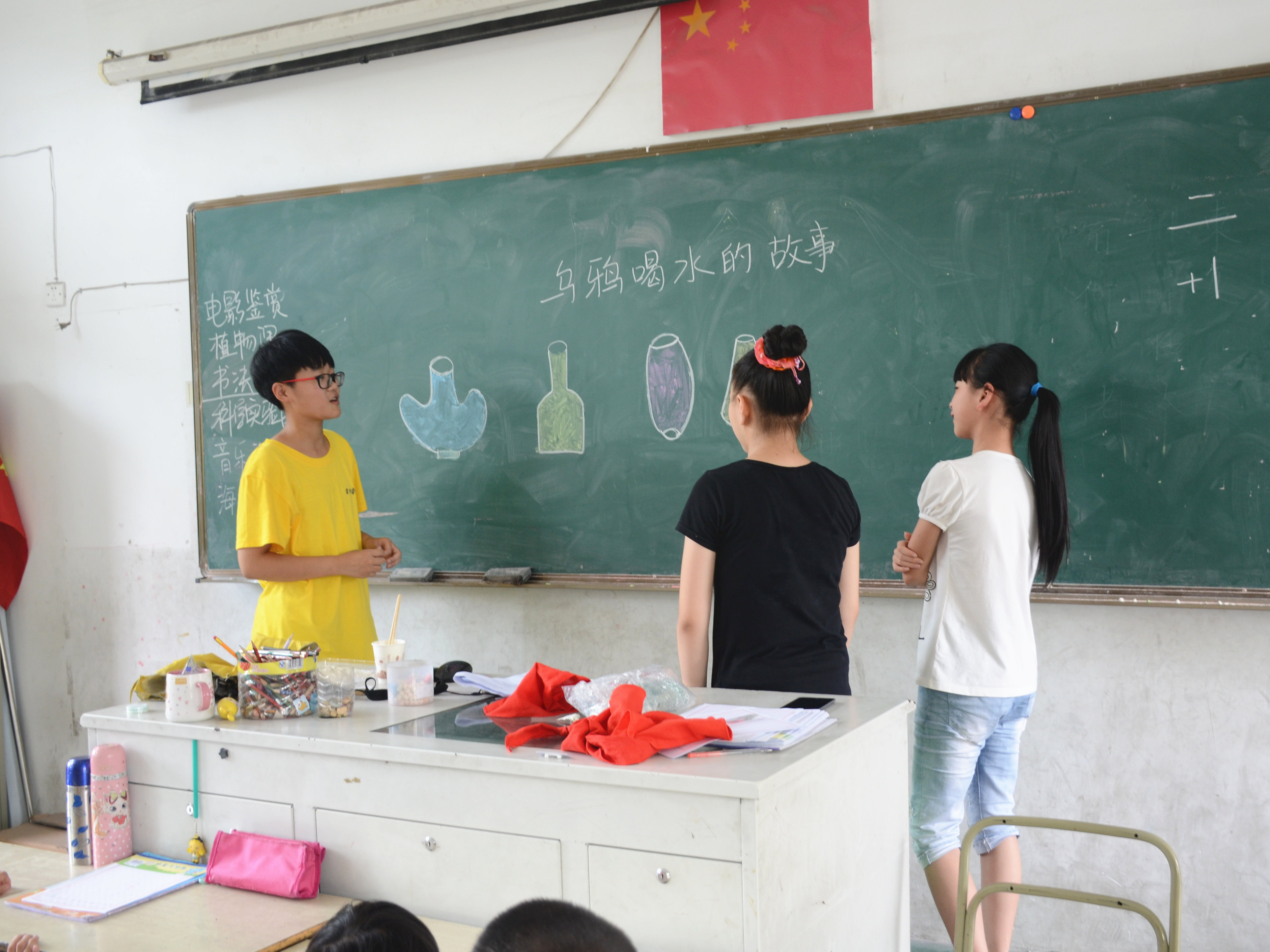 本次课程以实验为主,学生通过亲自动手,从一个个细微的现象、具体的结果深入了解实验的原理,寻找生活的奥秘。首先,志愿者挑选了几名跃跃欲试的学生上台进行“筷子的神力”小实验,即通过筷子将装有米的纸杯提起。在不断地尝试下,只有一名小男生成功地完成了这项“艰巨”实验,同时他也正确地解释了其中隐含的科学原理,得到大家的掌声和老师的赞扬。接着,“乌鸦喝水”这项实验更是深受到学生们的喜爱,同学们将石头分别放入四个装有少量水且具有不同形状的瓶子里,观察水位的上升情况,并得出正确的实验结果。同学们在志愿者的温馨提示下共同归纳出实验的真实原理。在几项丰富有趣的实验过后,我们进入“科学求真”环节,寻找短文中的不科学之处。虽然这个环节难度高,但是同学们却一如既往地认真听讲,并不时对教师所讲授的内容表示理解。通过奇妙生动的科学实验课,大大提高了同学们的上课积极性以及增强了孩子们对自然的好奇心,同学们更是期盼着下节实验课的早点到来。