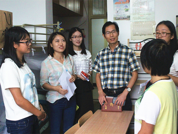 当天迎新工作结束后,学院领导与各班班主任、专业辅导员一同走访新生寝室,解答新生的疑问。学院老师嘘寒问暖、谆谆教诲,让新生们倍感温暖。他们兴奋地向老师们讲述刚到学校的感受和对大学生活的憧憬。寝室里弥漫着温馨的气氛。
