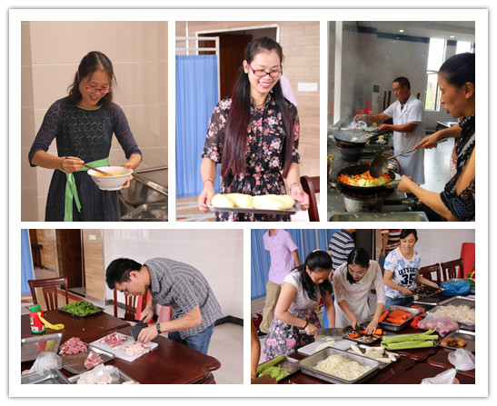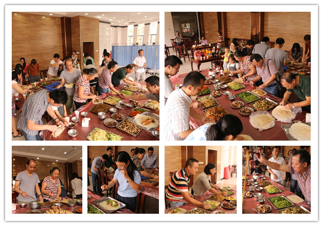 此次活动得到了后勤餐饮中心的大力支持,学院教师其乐融融的欢聚一起,享受着自己动手包食饼筒,不仅增强了员工凝聚力,还更好地体现生命大家庭的和谐氛围。