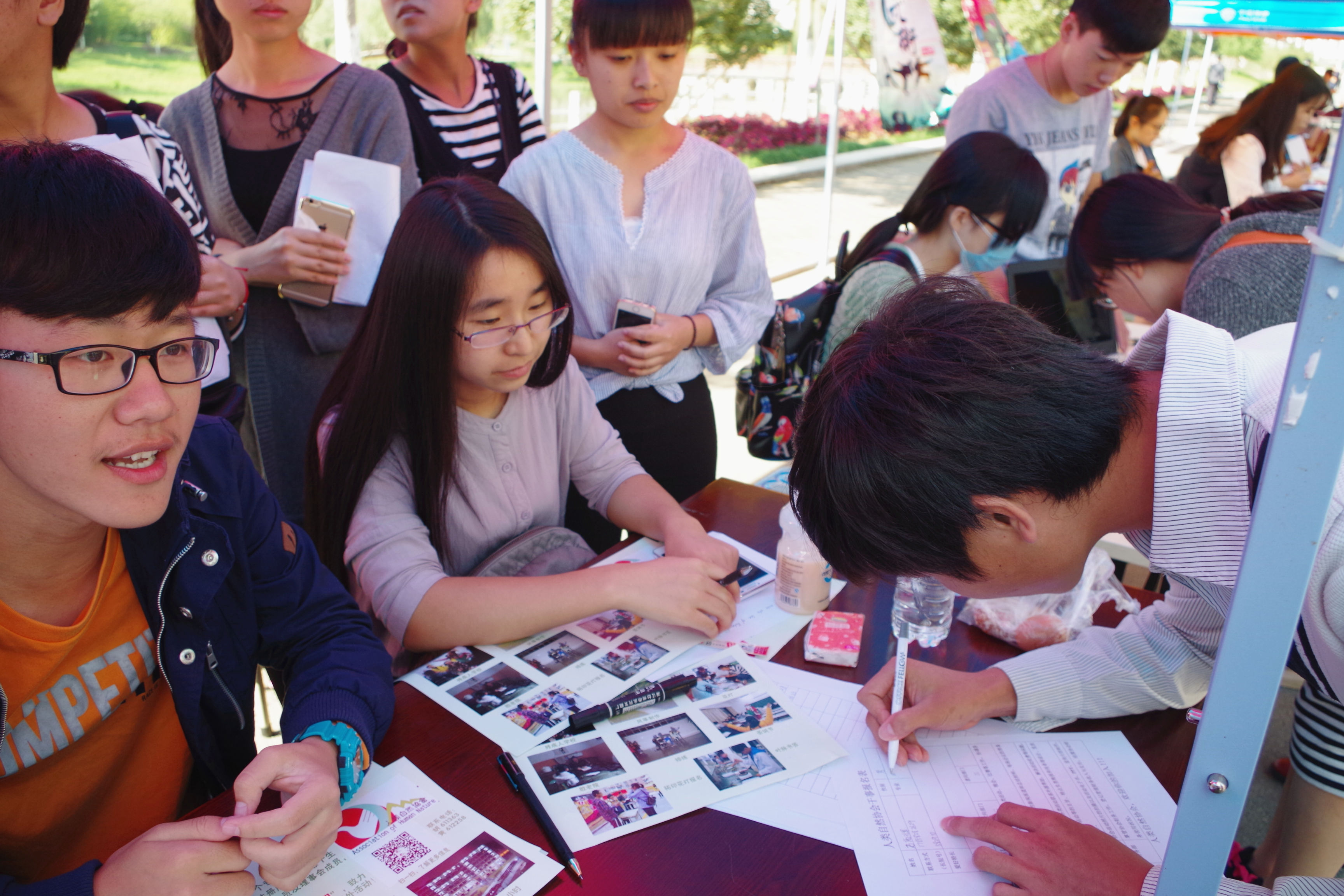 10月11日上午,人类自然协会在教学楼前的招新点现场宣传招新。在招新设点处,理事们耐心地向同学们介绍社团、解释问题,吸引了很多同学加入社团、参加干事竞选。当日下午人类自然协会就开展了第二十届干事的面试工作。面试现场,竞选的同学们通过自我介绍的形式展现自己,讲述自己对竞选部门的认识。理事综合考核新生的素质。