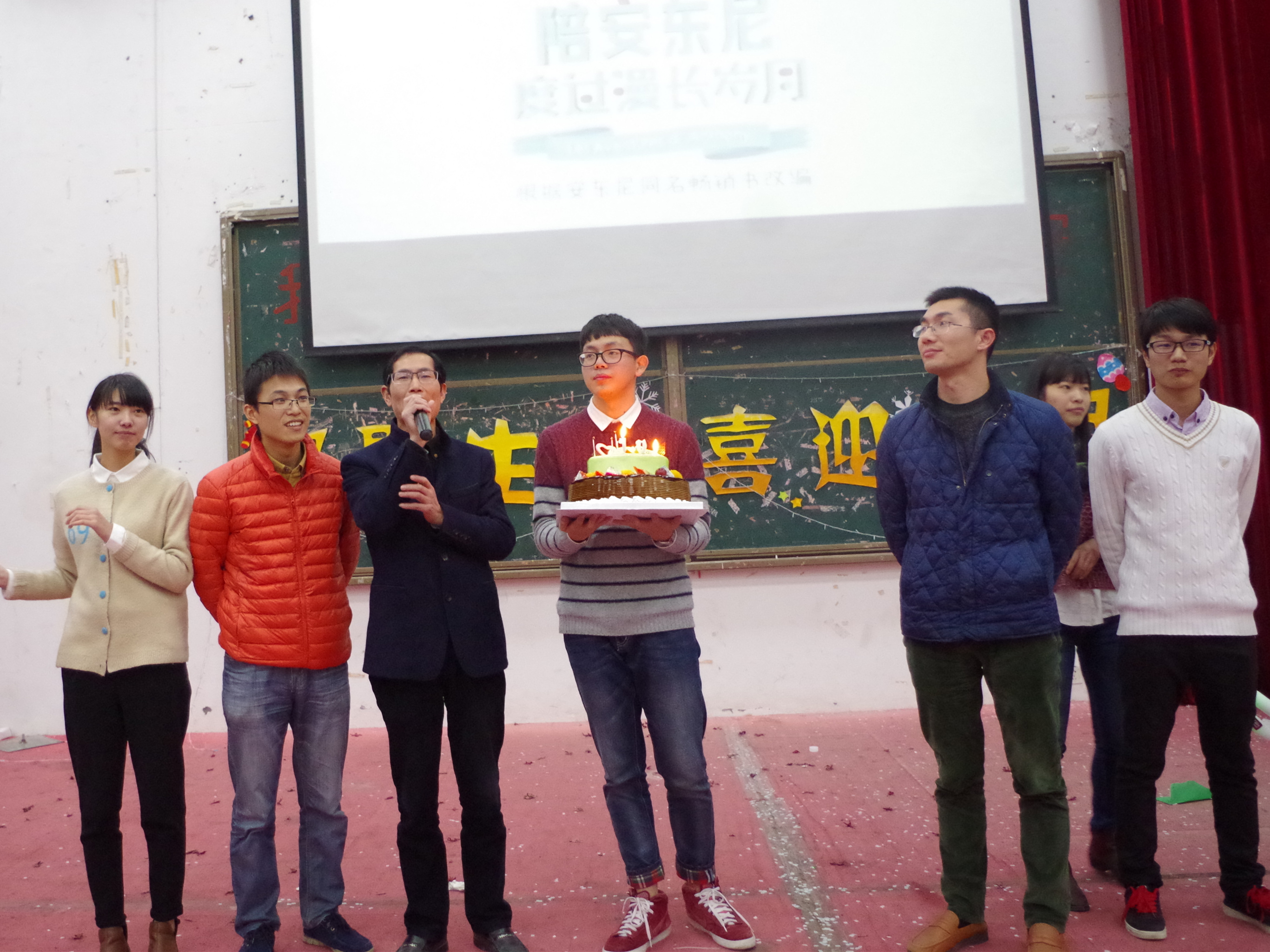 今年是生命学院分团委、学生会走过的第十个年头,为了庆祝十周年的生日,晚会还特地准备了一个生日蛋糕,王金宝书记与所有成员共同欢度这一美好时刻并为晚会致辞。