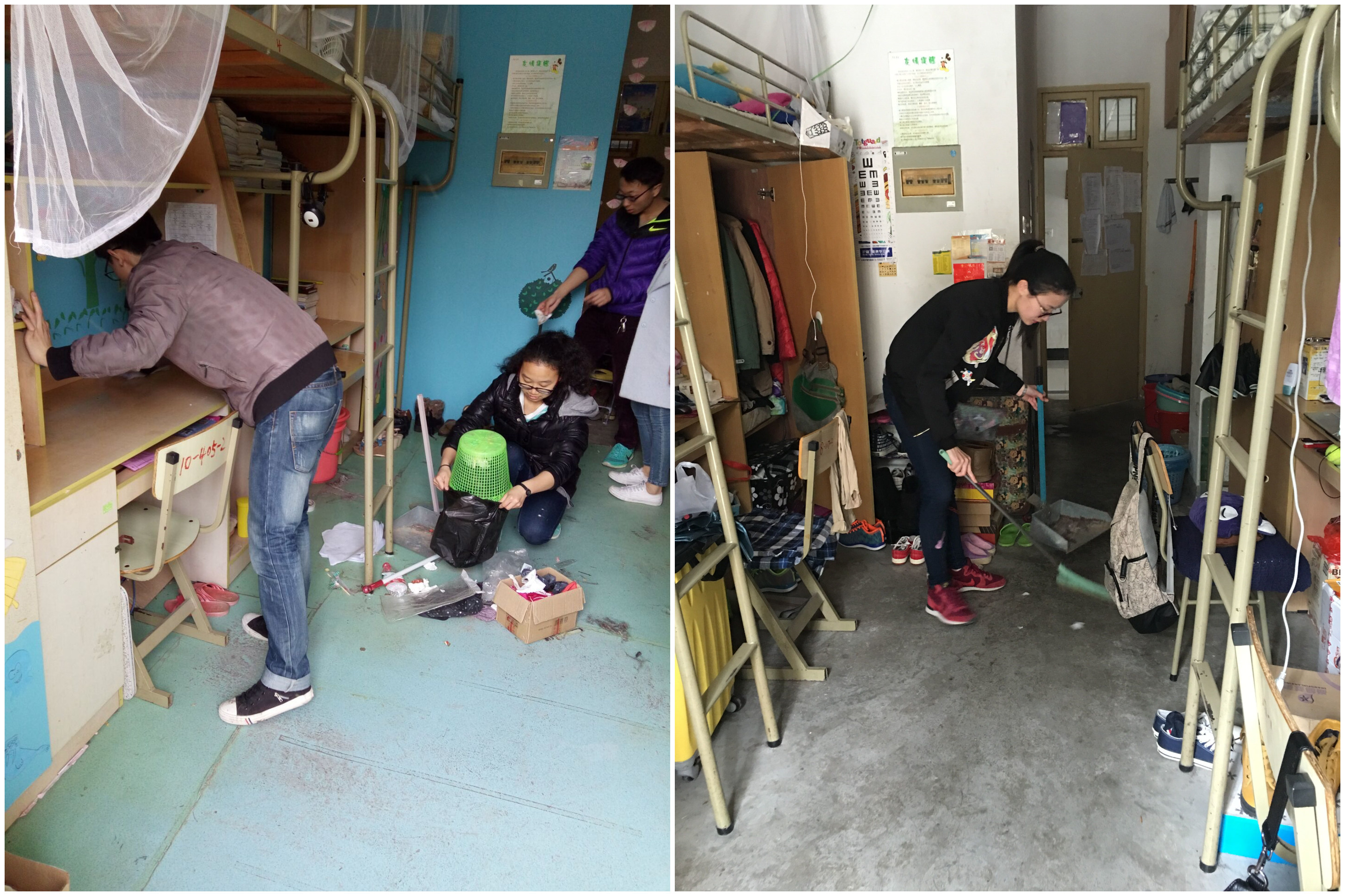 各专业学生党员分别对所在专业的毕业班学生寝室,以及卫生不合格寝室进行彻底大扫除,清洗水槽、清扫垃圾、整理杂物等,同时对宿舍内的插座使用、阳台堆积可燃杂物、卫生间安全用电、违章电器等可能存在的安全隐患进行排查。经过两个多小时的辛勤劳动,共清扫了80多间寝室,各寝室清扫前后是天壤之别。
