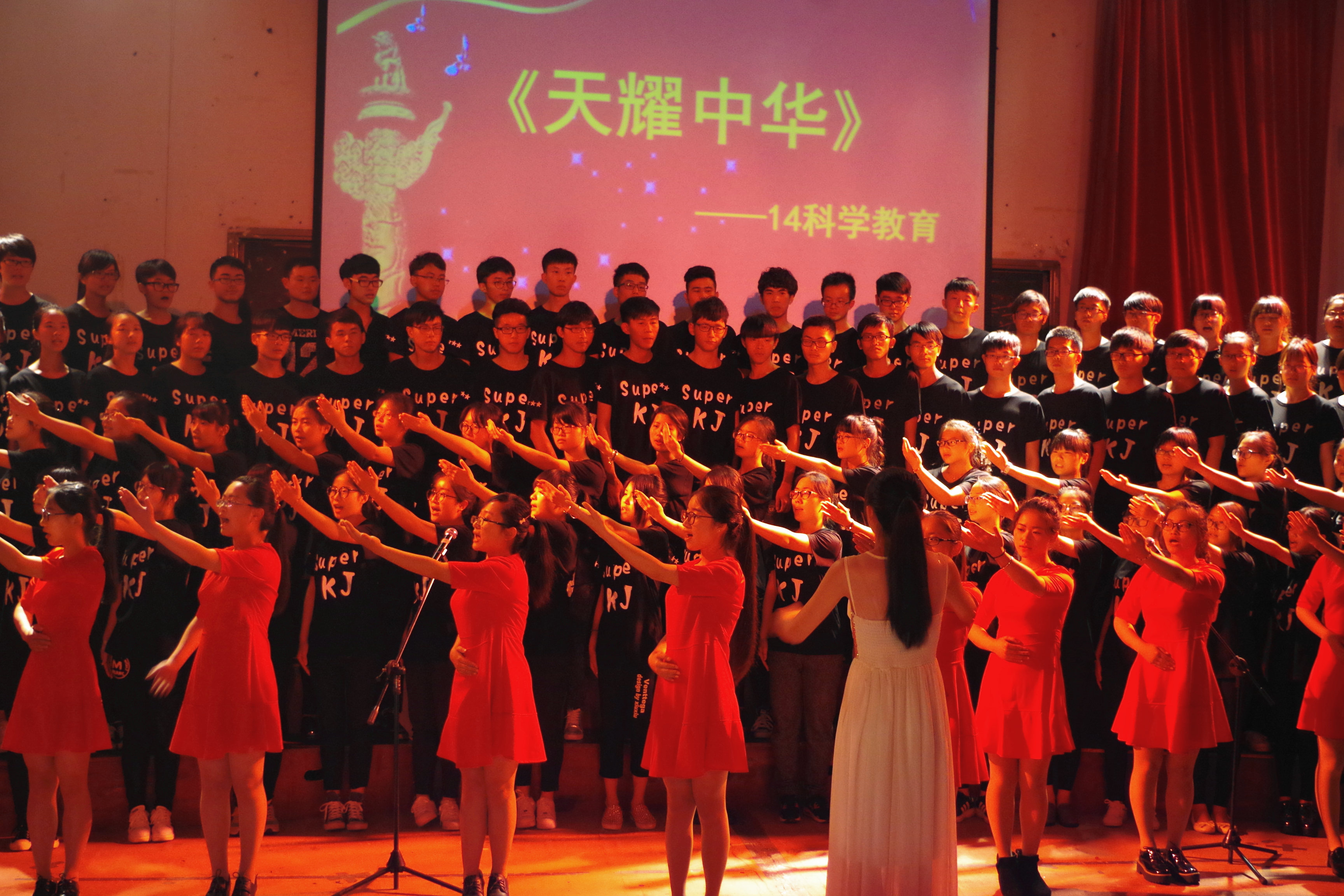 在观众热烈的欢呼和掌声本届红歌大赛正式拉开帷幕。学院11个团支部精心准备,为大家带来了精彩的表演。15生物科学团支部以一首《强军战歌》火热开唱,振奋人心;14生物工程团支部演唱的《台州学院校歌》节奏铿锵有力,激情澎湃;15环境工程团支部用合唱加情景的模式诠释了我们都是《相亲相爱》的一家人,创意无穷;14科学教育团支部《天耀中华》合唱精湛,感情充沛激昂,将现场气氛推向高潮。其他团支部分别用《精忠报国》,《红星闪闪》,《打靶归来》等一首首充满激情与正能量的歌曲讴歌了团结奋进的革命乐观主义精神,抒发了同学们浓浓的爱国情怀。声情并茂的演唱以及对祖国的无限情怀将歌曲演绎的淋漓尽致,赢得在场观众的阵阵掌声。最终14科学教育的一首《天耀中华》气势磅礴地演唱摘得本次比赛的桂冠。