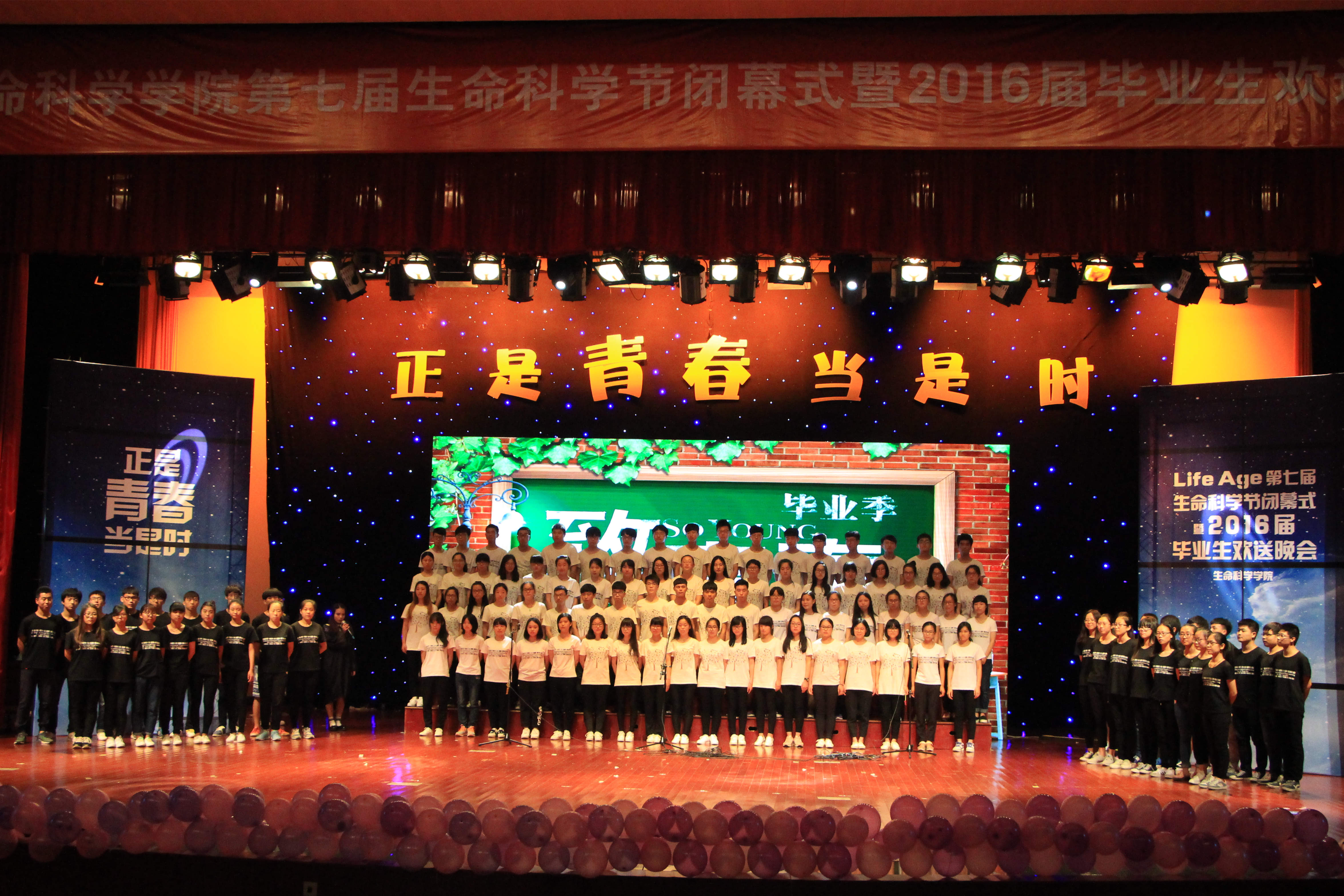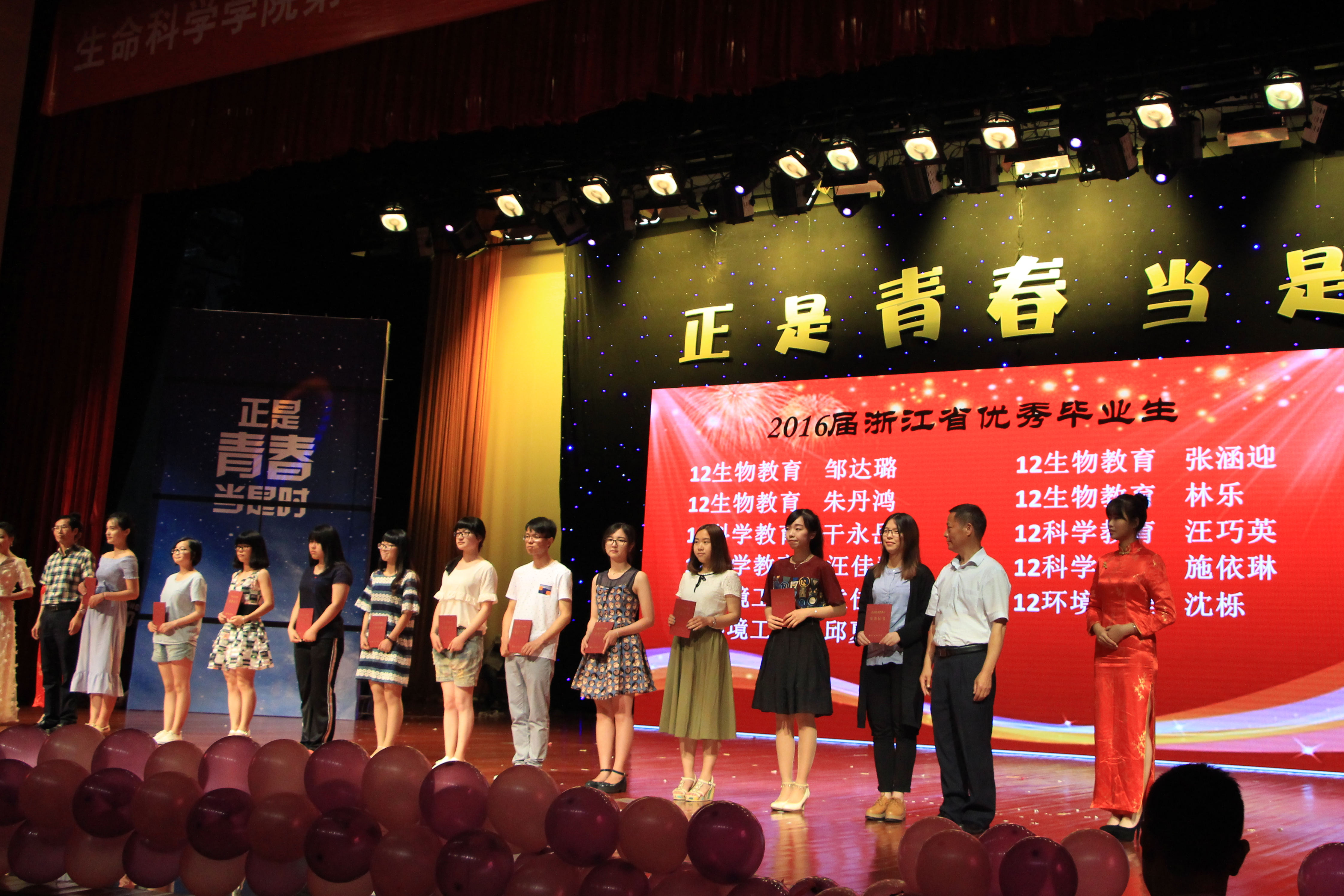 又是一年毕业季,正是青春当是时,6月14日,生命科学学院 “Life·Age”第七届生命科学节闭幕式暨“正是青春当是时”2016届毕业生欢送晚会在椒江校区大礼堂举行。学院党政领导、学院师生与2016届毕业生共聚一堂,在晚会现场重温美好时光,欢送道别。校相关部门负责人、台州边检站官兵等应邀观看了文艺晚会。