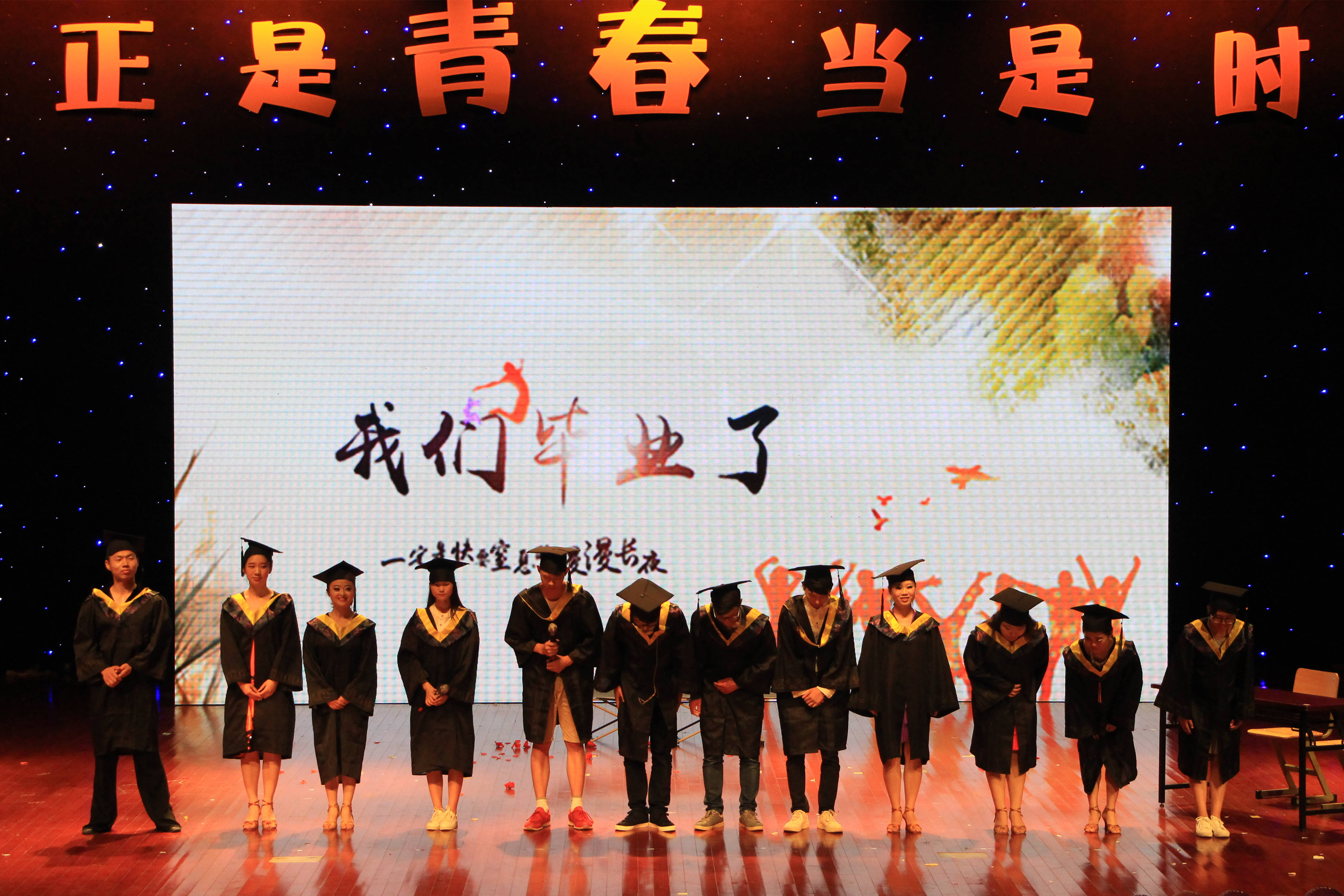 近几年,学院一直在打造毕业季文化精品,通过茶话会、毕业党员宣誓、毕业晚会等形式营造良好的毕业文化。本台晚会节目的创意、策划、编排,音乐、视频、背景素材、动画效果均由全院师生独立完成,并首次使用全LED演出屏幕,为在场观众献上了一场精彩绝伦的视听盛宴。