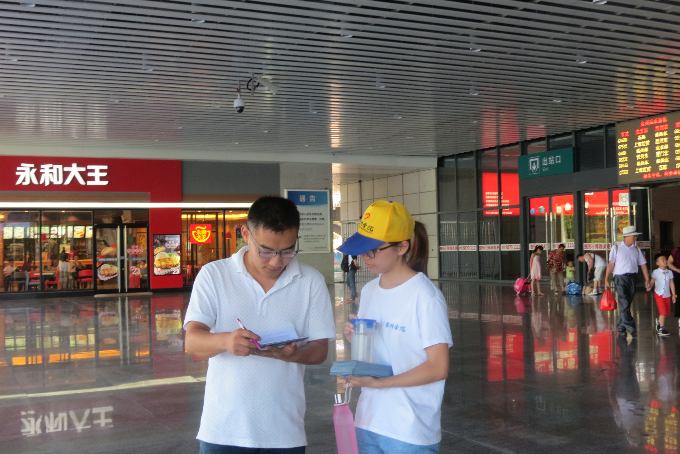 7月3-5日,实践队分别来到市民广场、星星广场、台州火车站进行宣传实践。在市民广场实践队员拿着宣传单向椒江市民广场及周边的市民们进行海洋保护宣传,并对其进行了海洋意识问卷调查。在火车站,向正在候车的旅客递出手中关于保护海洋生态意识调查的问卷,并呼吁他们一起关注海洋。此次宣传和问卷主要为了普及海洋禁渔期知识,并宣传保护海洋环境。