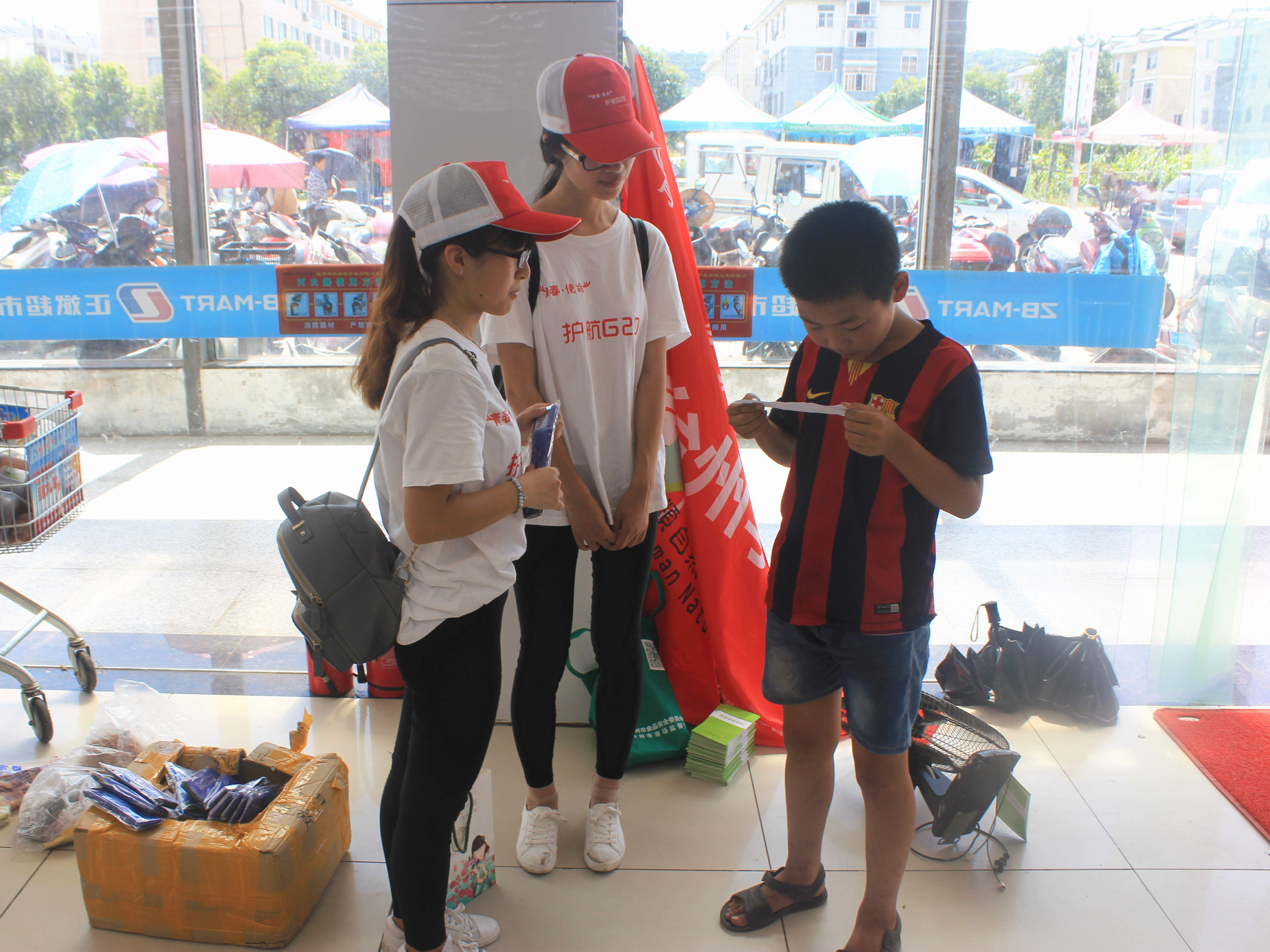 队员们为来往行人发放食品安全宣传手册,并为顺利读出食品安全法条规的人赠送礼品。并邀请每一个人都在“青春使命,护航G20”的标语横幅上签上自己的姓名,加入到守护舌尖的大阵营里。