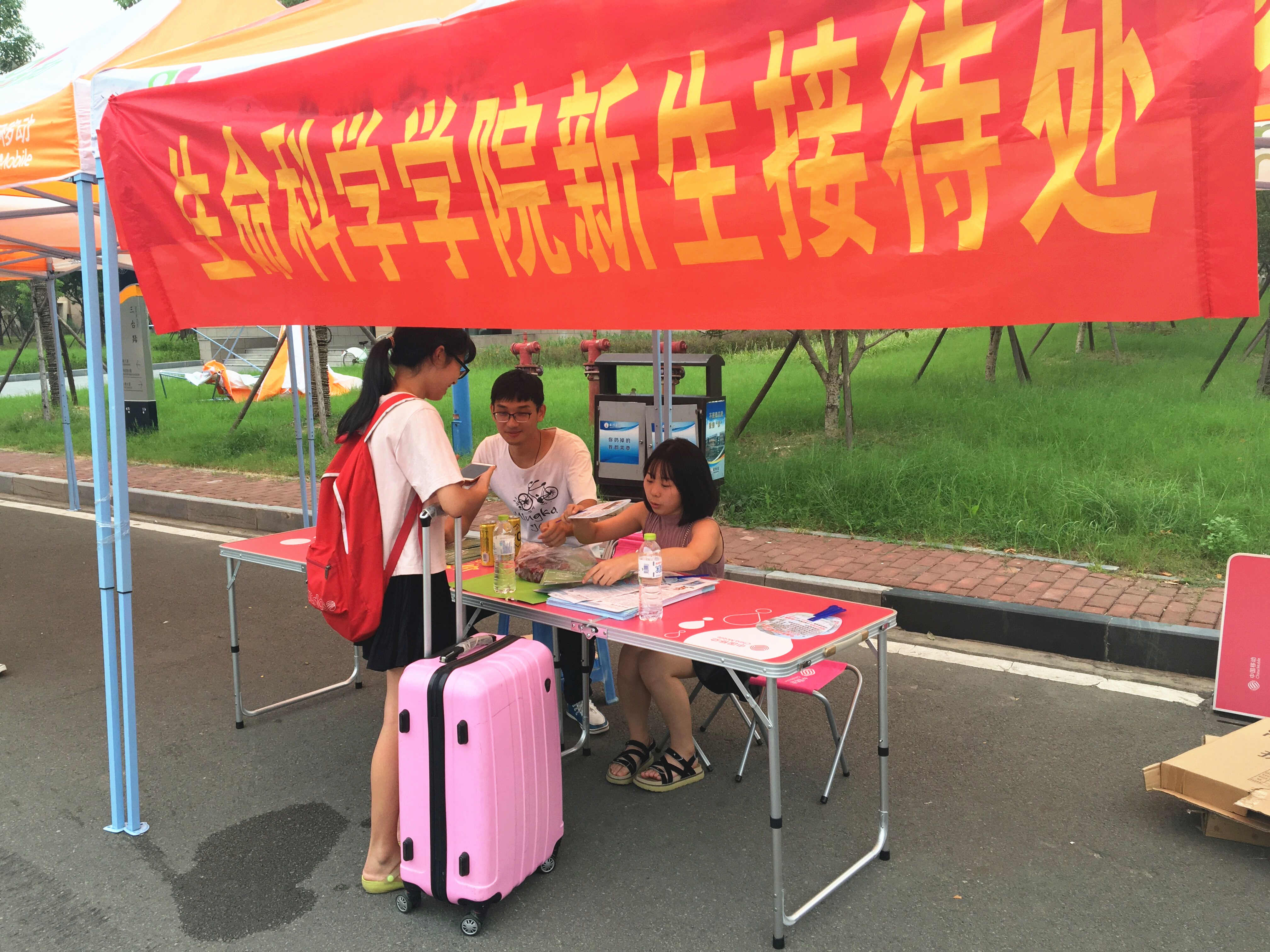 学院领导早在暑假就对专升本迎新工作进行了安排部署,专升本新生报到时间与老生报到时间为同一天,一定程度上增大了迎新的难度,为确保顺利办理各项手续,学院特在学校门口设立“生命科学学院新生接待处”,由负责迎新的志愿者一对一陪同新生办理注册、校园卡领取、学费缴费和寝室入住等服务,为广大新生报到带来便利。学生家长还与负责迎新的老师交谈了解情况,家长和新生对迎新工作都很满意。