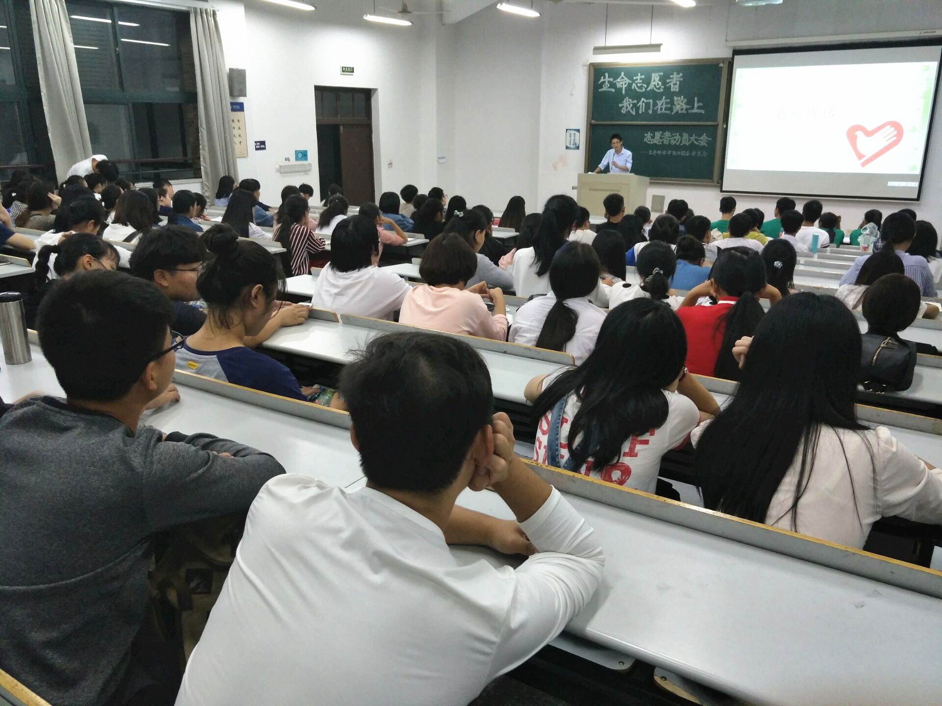 任老师以北京奥运会时志愿者的报名和筛选情况让学生们更加了解了如何成为一名合格的志愿者,重点讲述了如何成为一个合格的志愿者——即拥有熟练的专业技能、良好的素质、广博的学识、不计报酬的决心。并要求志愿者增加自己的责任感、提高服务技能、提高文明素质、树立劳动最光荣的意识。坚守“奉献、有爱、互助、进步”的精神,让世界充满爱。
