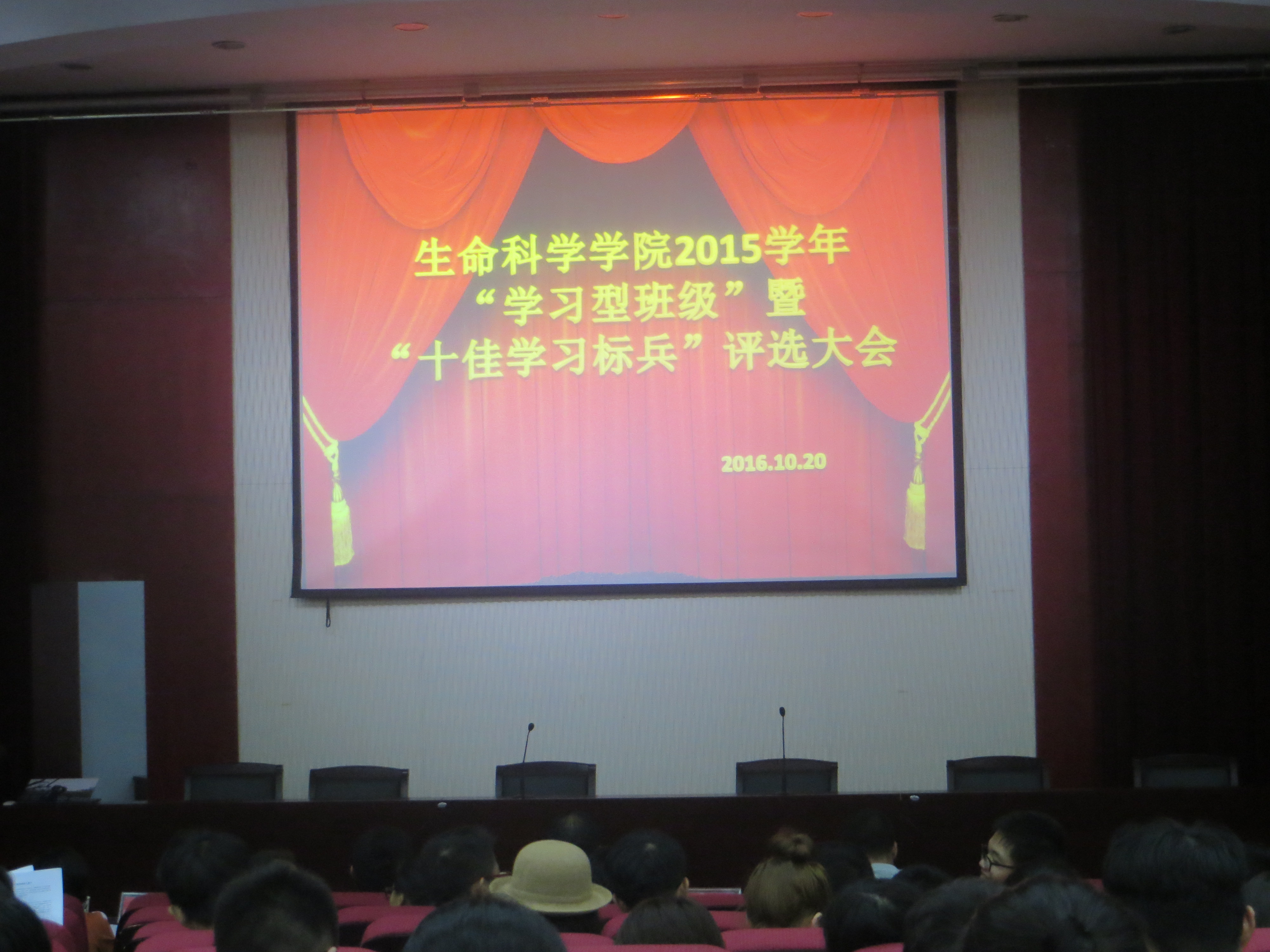 为了更好地交流和总结我校优良班级创建活动的经验和成果,进一步推进学风建设,10月20日,生命学院在学术报告厅召开了2015学年生命科学学院“学习型班级”暨“十佳学习标兵”评选大会。学院党总支书记王金宝、副院长孙长森以及各班班主任、辅导员等出席并担任专家评委,各班学生代表组成大众评审。