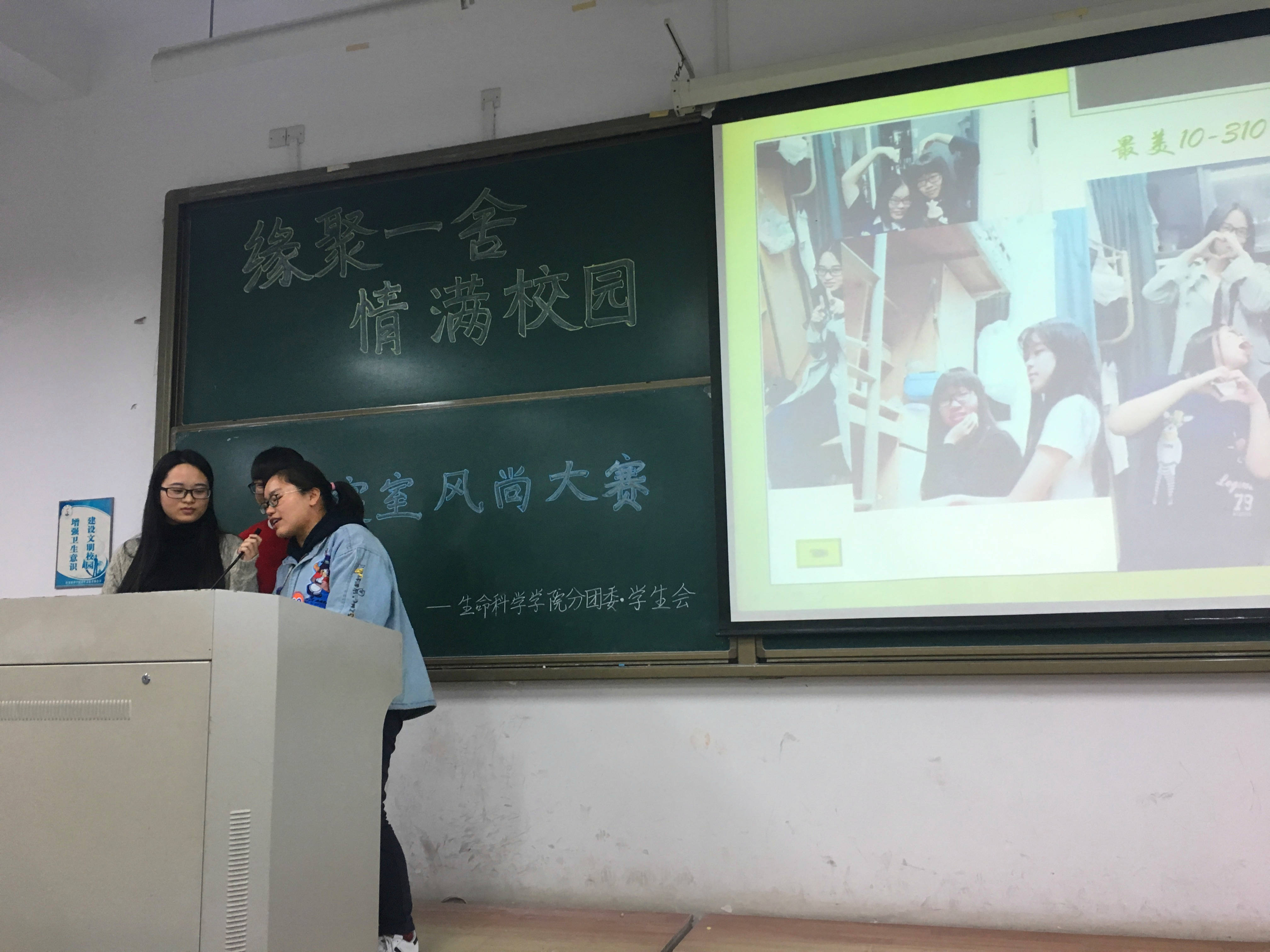 缘聚一舍,情满校园,11月27日,生命科学学院2016年寝室风尚大赛决赛在椒江校区2208展开了精彩的角逐,13个寝室依次上台展现寝室风采。学院辅导员出席并担任评委。