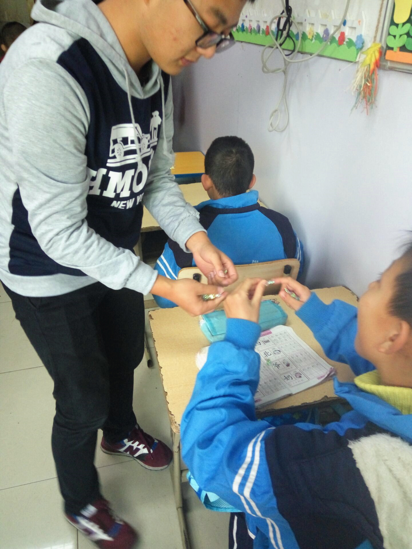 12月1日,人协带着换取的礼物分别前往培智学校和椒江康平托老院,为孩子们和老人送去礼物。陪小孩子们玩游戏、学唱歌;与老人拉拉家常、讲讲笑话;听老人讲那过去的事。校园和敬老院萦绕着欢声笑语,一派和谐温馨。