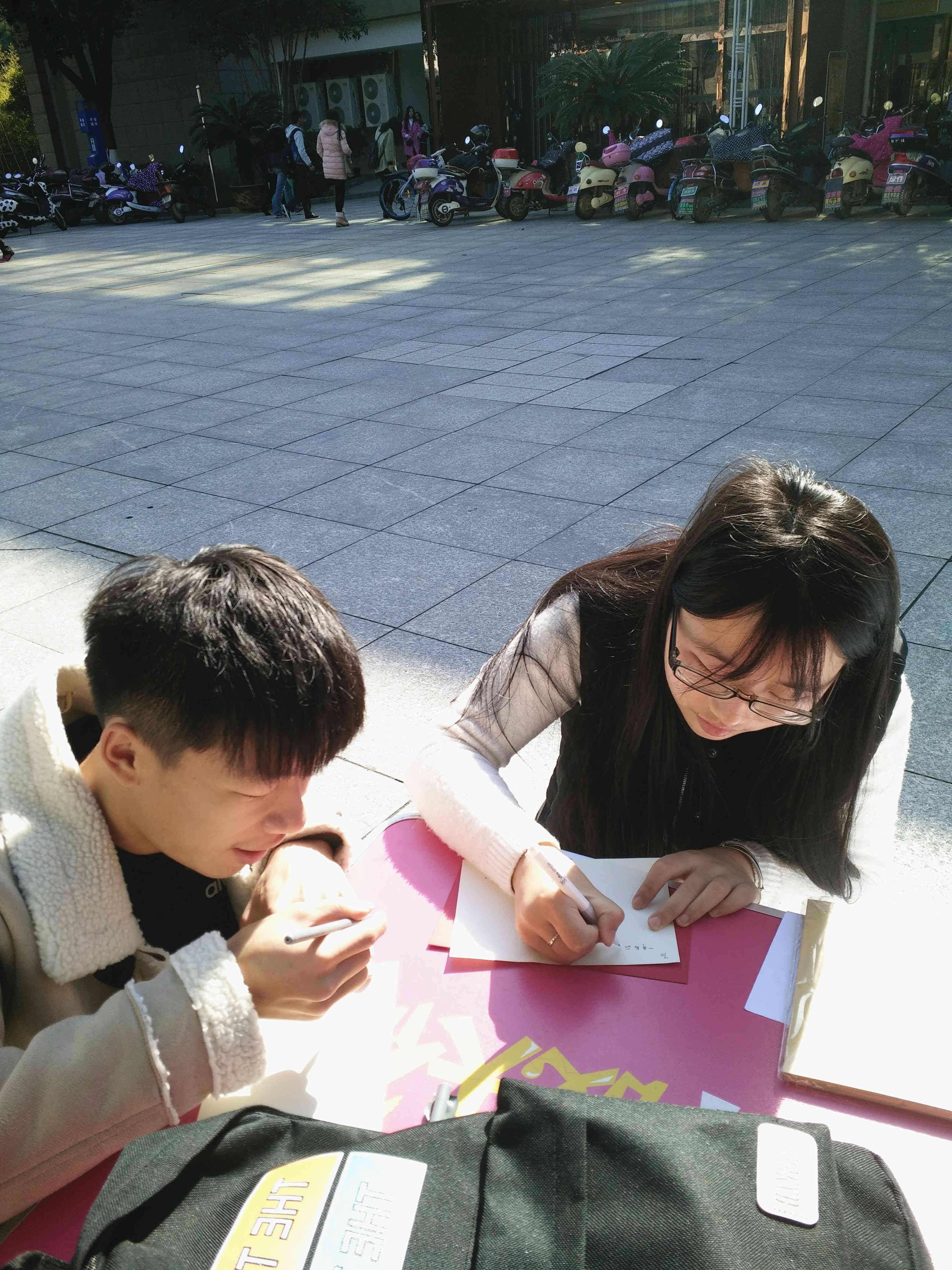 活动当天中午,协会成员在人群中进行宣传,发放宣传单,赠送小礼品等方式吸引同学们参加。“不做上一个谁,只做第一个我。”“希望以后的自己越来越好。”“现在的你还和喜欢的人在一起吗?”一张张明信片上写着对未来的期许,对自己的鼓励。最后同学们纷纷将写好了信件放入信封进行保存,并在信封上写下收件人的姓名、专业和联系方式。在2017年的12月份,人协将会由专人投送。现场气氛热情高涨,同学们表示期待“未来”这一天的到来,想象着未来那天看到这份信的表情,希望“未来”的这一天经过自己的努力可以如信件中所写的实现自己心中所想。