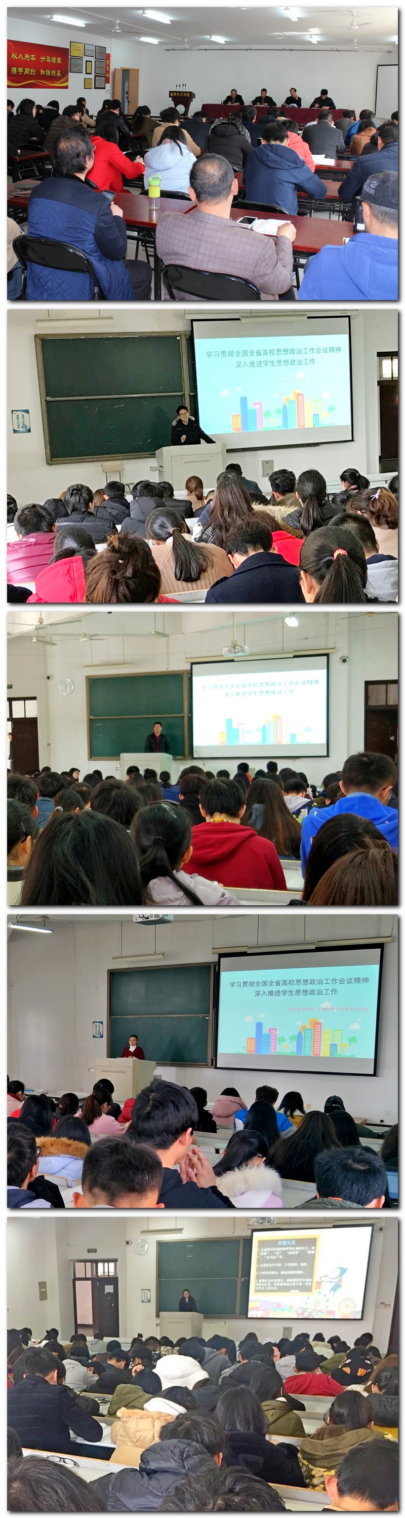 在全体教师学习大会上,王金宝书记传达了省委书记夏宝龙和省委常委、宣传部长葛慧君在全省高校思想政治工作会议上的讲话精神,以及校党委关于学习贯彻全省高校思想政治工作会议精神的相关要求。他强调,一是要坚持社会主义办学方向,坚信党的领导,自觉增强政治意识,深刻领悟“课堂教学非个人行为,而是政治性非常强的组织行为”的要义,站稳政治立场;二是要把立德树人作为学院的立身之本,增强“四个服务”意识,提高人才培养质量。全体教师要自觉践行“四有”、“四个引路人”、“四个相统一”的要求,做学生成长道路上的知心朋友和人生导师;三是要与时俱进推进思想政治工作,把学生思想政治教育贯穿于具体教育教学全过程,促进“课程思政”化,做到“因事而化、因时而进、因势而新”,实现全员育人、全方位育人、高效育人。
