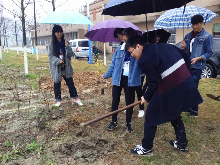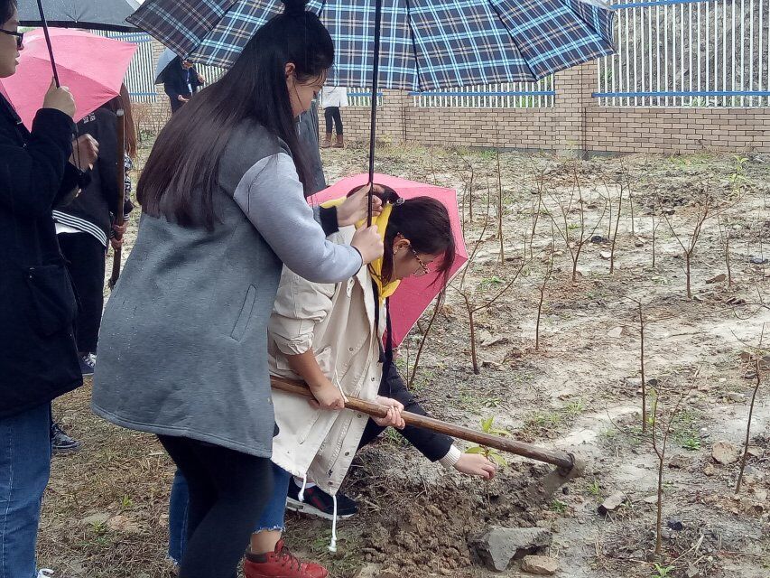 苗圃种树,校园增添绿色。12日下午,人协在学校的苗圃区进行植树活动。台州市林业局为人协提供了浙江楠和红豆杉等50株树苗供学生种植,后勤管理处提供了种树需要的工具。参与种树的同学个个情绪高涨,大家有的铲着土、有的扶着树,有的踩着泥,互相配合,干得热火朝天。同学们看着自己亲手种下的小树,畅想着它们枝繁叶茂的时候心里满是欢喜。