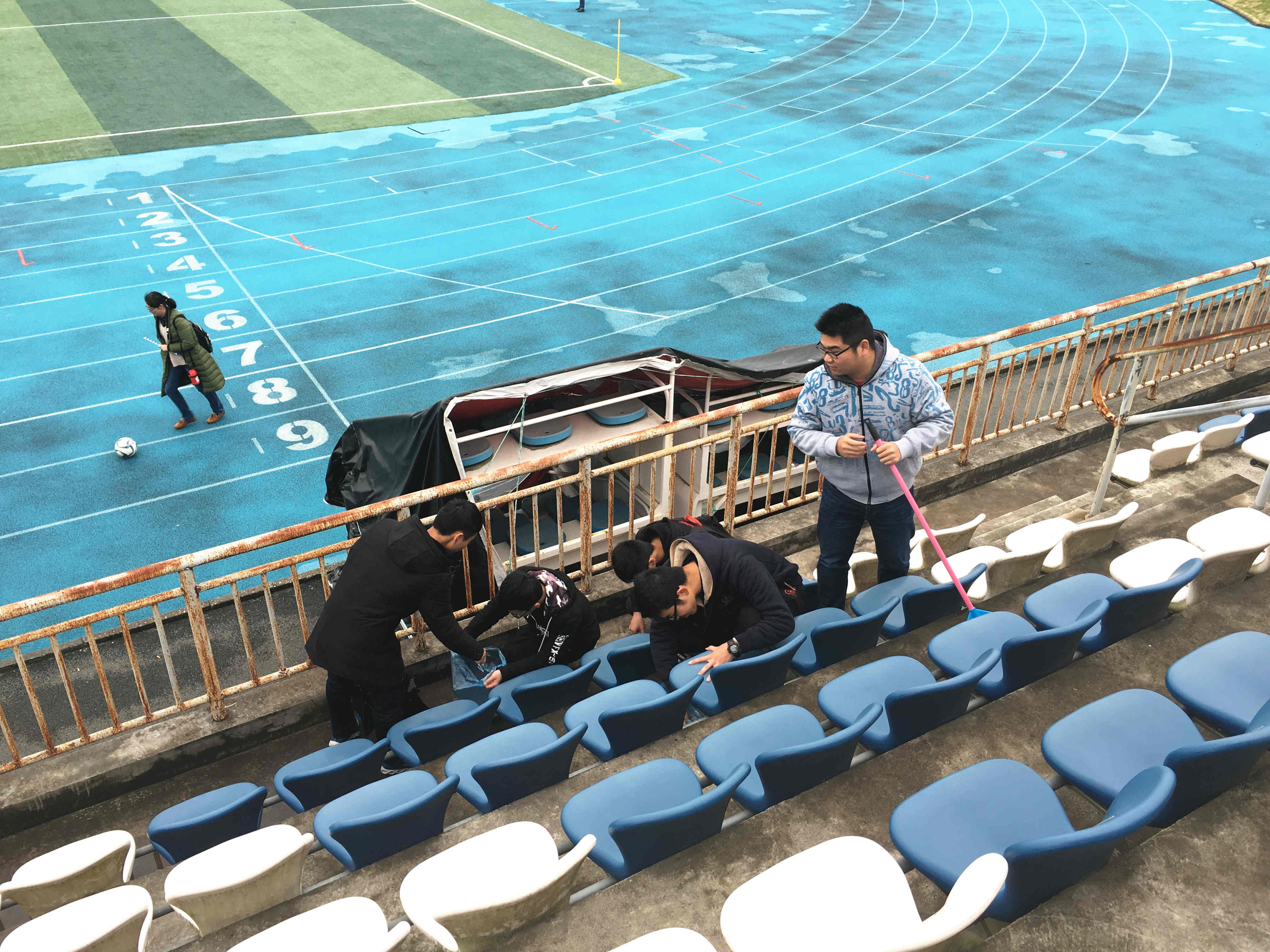 青春有力量,为维护校园环境尽一点绵薄之力,增加班级同学间的友谊,16科教3、4班于3月19日开展清扫操场看台志愿者活动。
