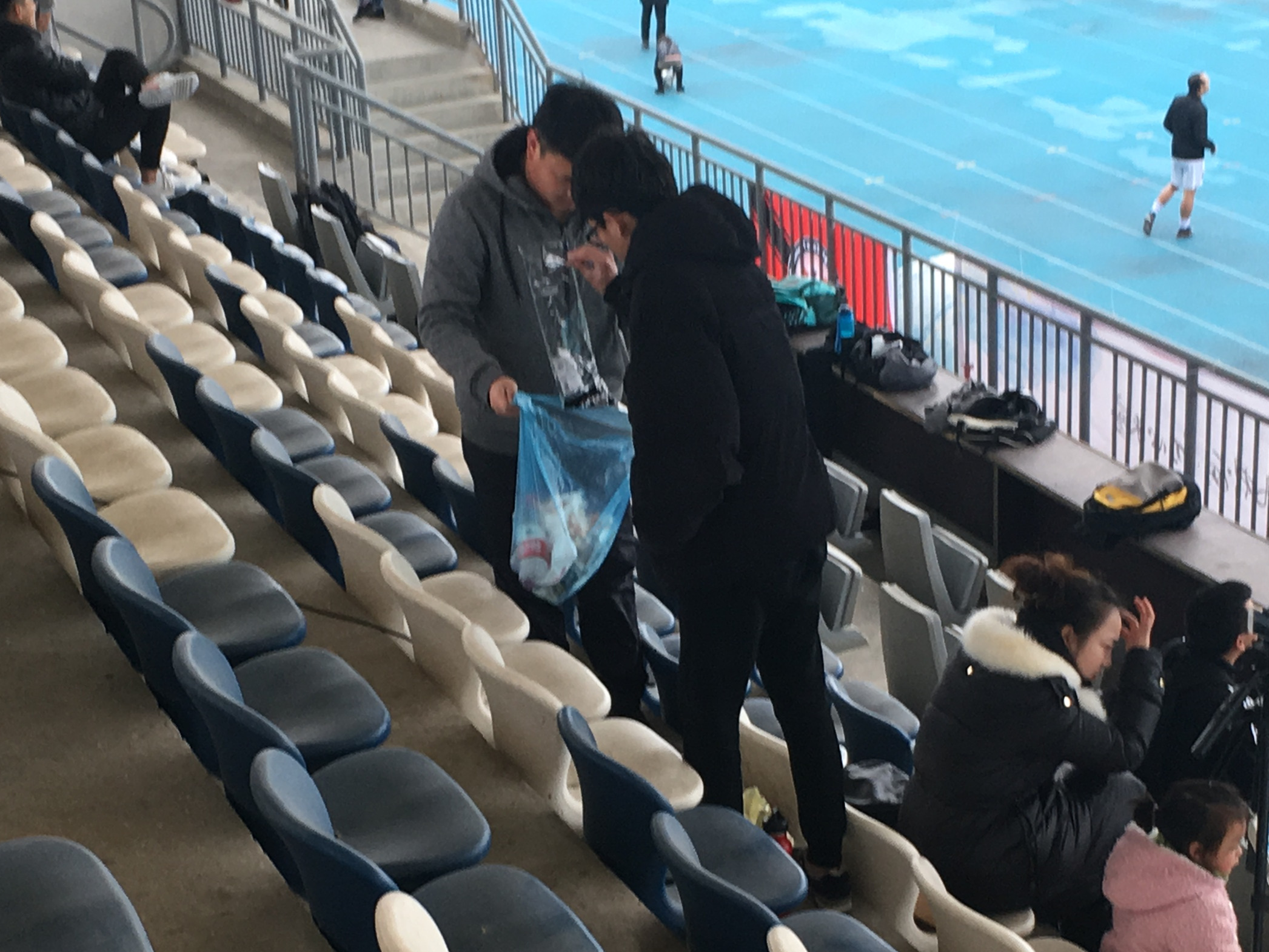 下午两点,同学们带上了扫把和垃圾袋准时在操场看台下集合。班委给各个同学分配打扫用具和区域的任务,开始认真清理属于自己任务区域的看台。虽然上午下过雨,但同学们依然认真负责的打扫,让这次志愿者活动变得更有意义。部分同学完成属于自己区域后,热情的帮助旁边区域未完成的同学。经过一段时间后,在同学们辛勤劳动下,之前脏乱差的看台变得一尘不染。