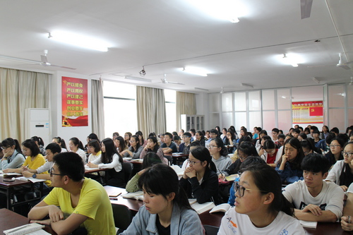 正值“五.四”青年节,王金宝书记向学员们送出了节日的祝福,他从弘扬“五.四”精神讲起,鼓励大家要树立远大理想,激励大家同心共筑中国梦。接着,王书记从“申请入党的基本条件”、“共产党员的义务与权利”和“入党的基本流程”三方面进行了党课教育,要求入党积极分子要端正入党动机,要树立为实现共产主义而奋斗的信念,要具有全心全意为人民服务的精神、踏实肯干的态度和高尚的品格,要发挥好强梁纽带作用,以负责的态度完成上级党组织安排的工作,鼓励大家积极要求进步,爱国、爱校、爱集体,以实际行动向党组织靠拢。