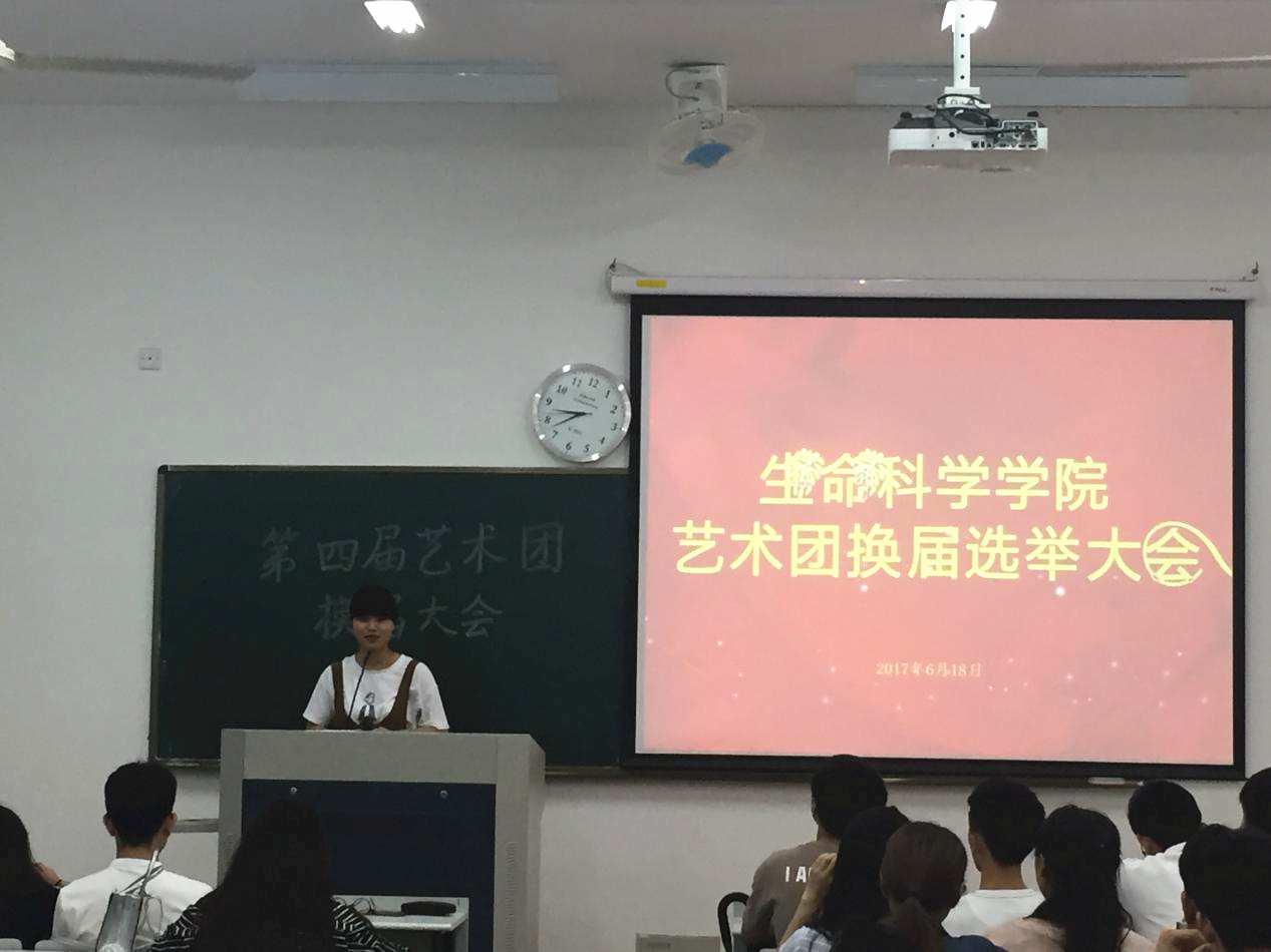 6月18日晚,生命科学学院第四届艺术团换届选举大会在6-203顺利举行,院分团委书记任敬钢老师,团学会主席团以及艺术团成员出席了本次选举大会。会议由第三届艺术团团长沈京霖主持。