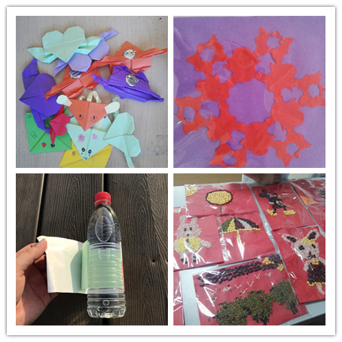 本次义卖物品以前期向毕业生们募捐到的生活用品、文体用品、工艺品、盆栽等为主,加上“知心支教”在东山中心小学支教期间与小朋友们一起制作的手工艺品,以其精美的外观以及实用性吸引广大市民前来驻足选购。其中小朋友们制作的手工艺品可谓琳琅满目,有精美的别针,造型新颖的剪纸画,构思新奇的豆子画,还有包装纸内附有小朋友们祝福的瓶装矿泉水。通过这小小的一瓶水,传递着小朋友们真挚的祝福与纯纯的善意,此时的这瓶水,不仅解渴,更能一解心中的烦闷,不失为夏日消暑降火的 “上等饮品”。