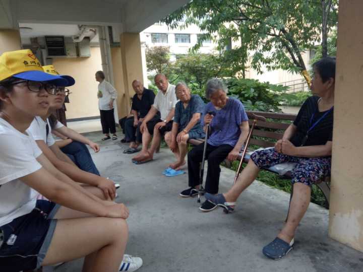过程中,成员们耐心地陪着老人们聊聊天,敬老院里顿时萦绕着欢声笑语。在整个实践活动开展期间,成员们和老人们坐在外面的长椅上,陪老人们拉拉家常、讲讲笑话,给老人们带去欢笑和快乐;有的人帮助老人四处走走散散心,打扫一下周围的环境,捶捶背,让老人变得轻松;有的人到户外和老人聊天,听老人讲讲过去,谈谈现在,不仅使老人摆脱了寂寞,也使队员自己受到了教育。看到老人们灿烂的笑容,听到老人们爽朗的笑声,成员们充分体会到了本次实践活动的意义所在——弘扬志愿精神,关注老年群体。此后,暑期社会实践队队员来到食堂帮助老人们准备饭食,并在福利院内的护理院院长的带领下,给老人们送去饭食。同时参观了康复护理院各层的先进设施,给予生病老人们的舒适康复环境,并看望了一些身体抱恙的老人们。